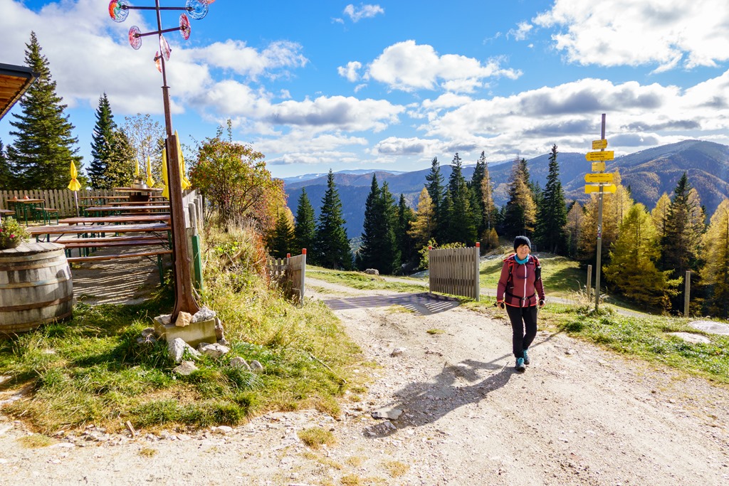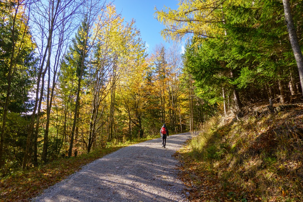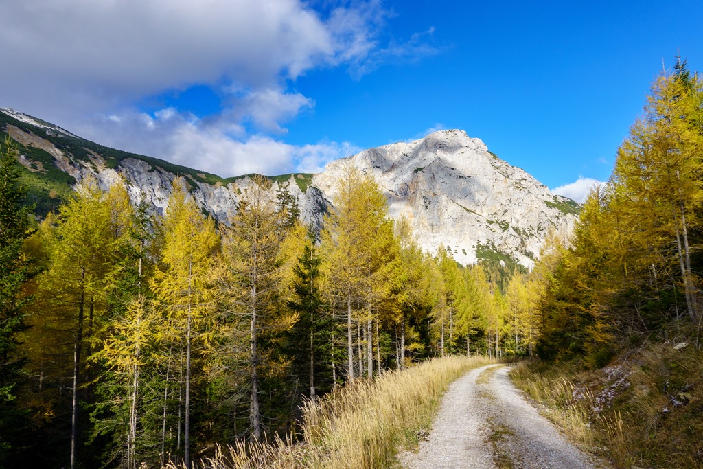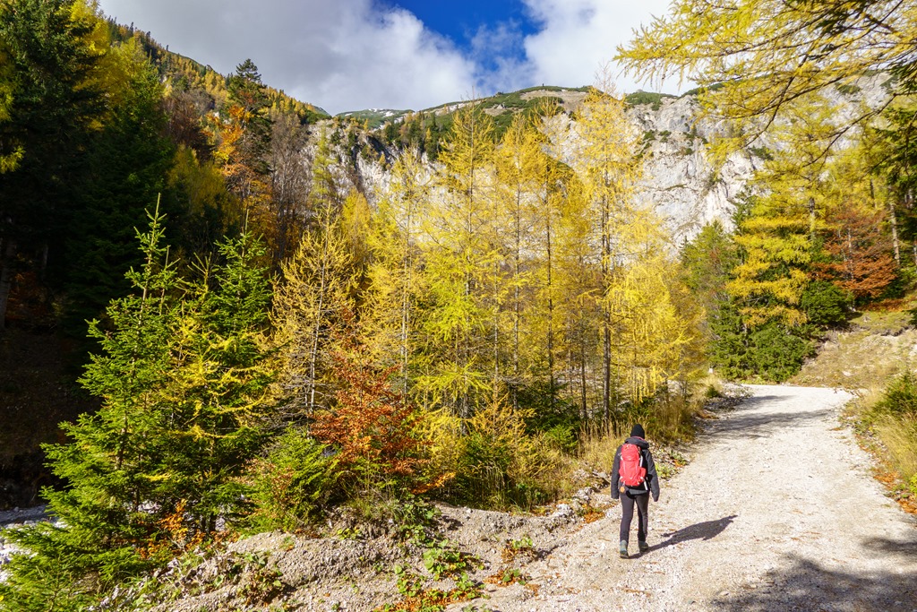 Köztudott, hogy aki a Preinerwandot célozza meg, annak legjobb Griesleitenből indulnia, mondjuk a Haidsteigre, a Holzknechtsteigre avagy a Preinerwandsteigre. Ez így is volt rendjén, mind a mai napig, mikoris Angikával, Griesleitenből egy egészen más cél irányában indulunk. Nem a Preinerwand vad és nyers sziklavilága, hanem a szelíd Waxriegelhaus az őszi barangolás áhított végcélja. Tehát visszafelé, hegynek felfelé, különös módon, ezen az úton még jómagam sem jártam.