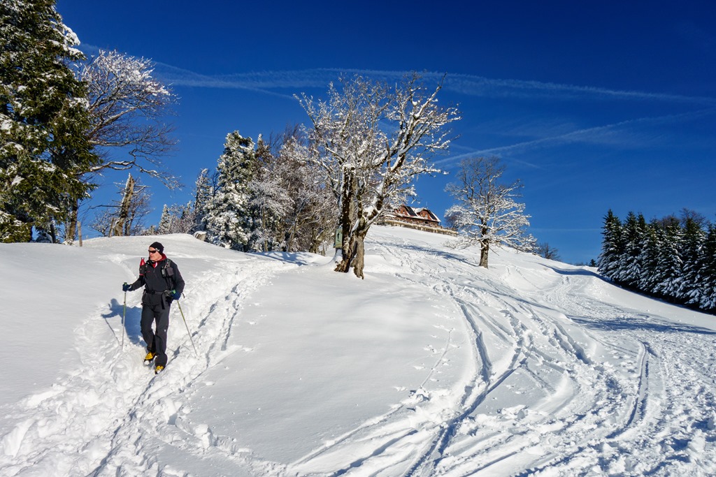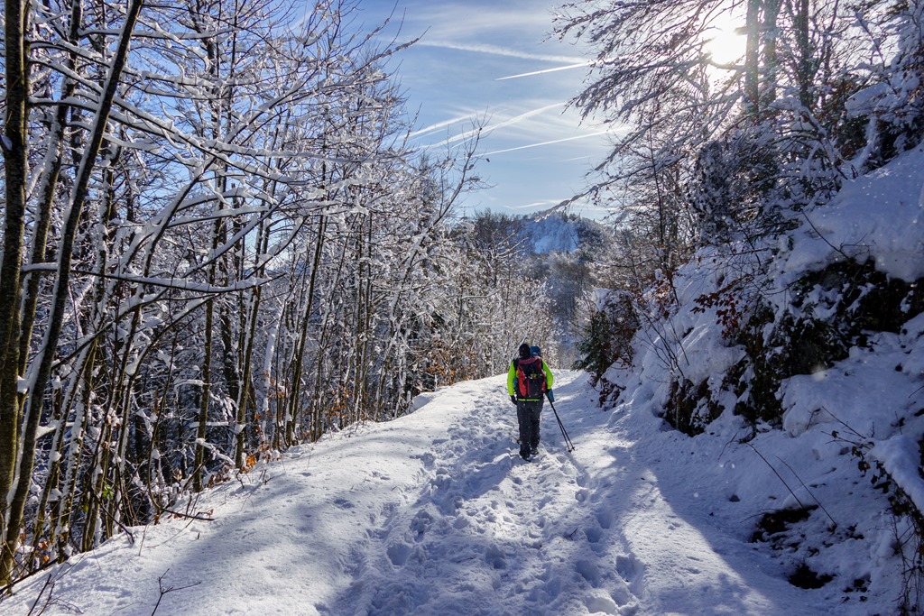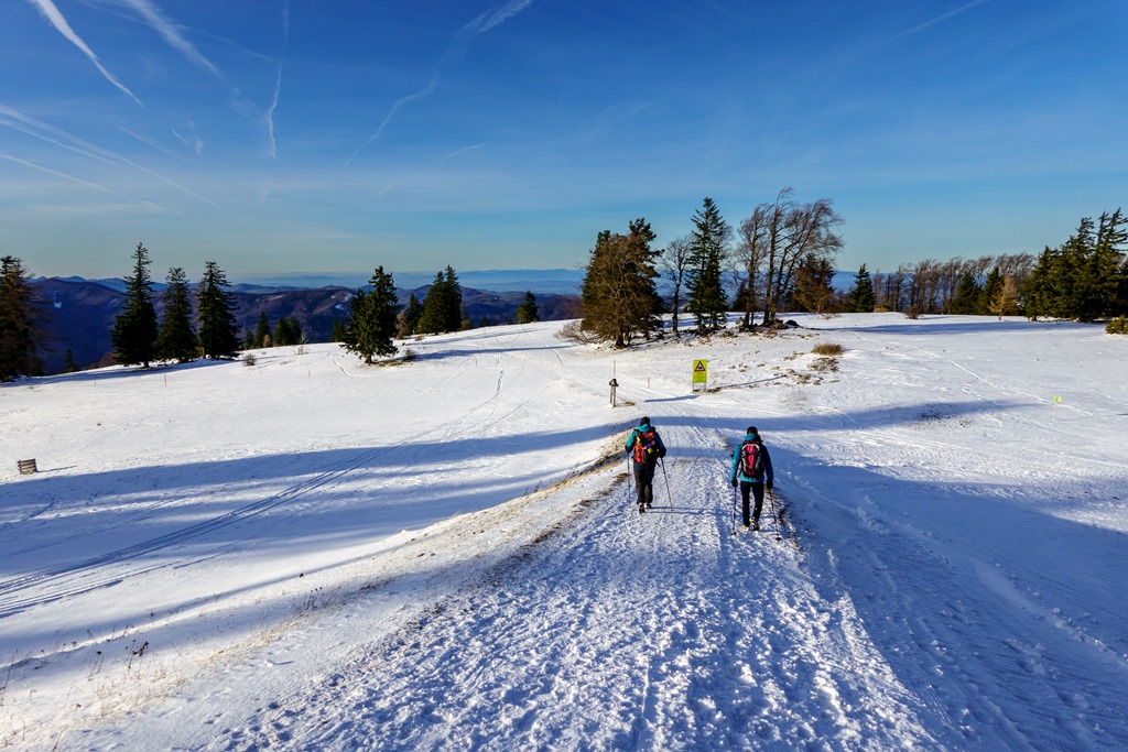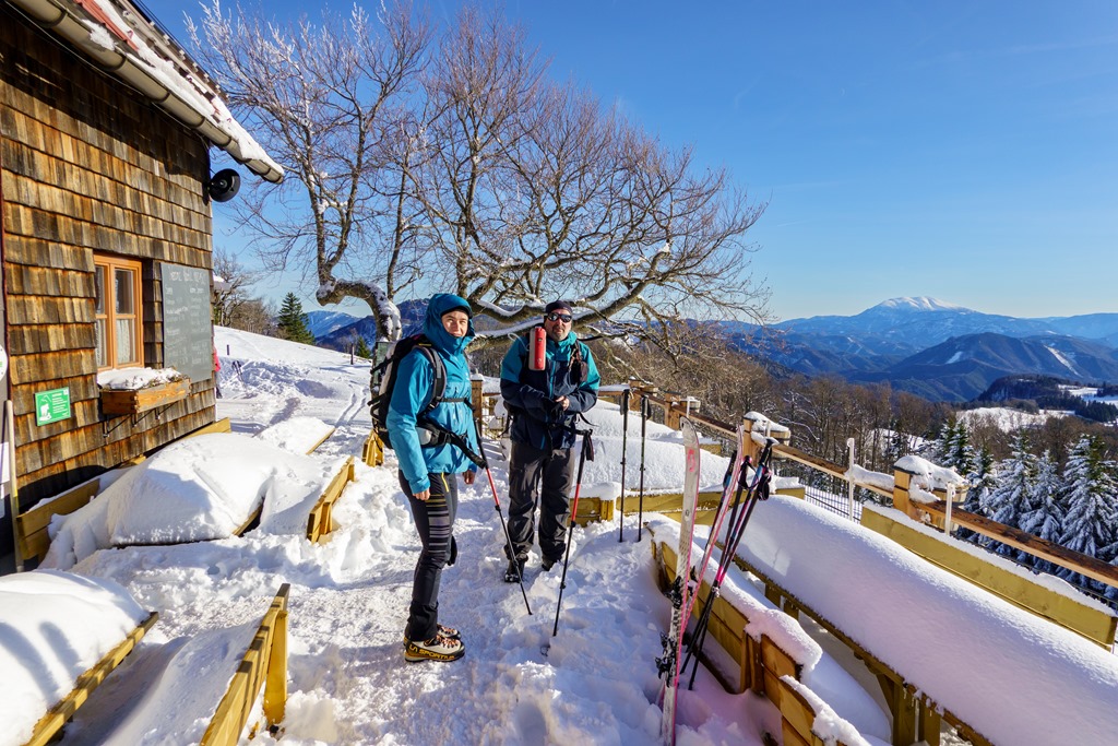 Télen nincs szebb, mint szikrázó napsütésben behavazott hegyvidéki tájban barangolni, sportolni. Az időjárás kegyéből, végre sikerül összehoznunk egy olyan kirándulást, mely elméletileg kilátásba helyez egy ilyen élményt. Sajnos érkezéskor, a völgyben, csak barnuló őszi avar és sárig felázott talaj fogad. Tulajdonképpen csalódottak vagyunk, mert elvárásaink szerint Lilienfeld környékének (Gutesteiner-Alpen), jobban kellett volna bírnia a pár napja beállt olvadást. Hát, mint tapasztaljuk, a cirka 400 m szinten fekvő Fallgrabenben, ami a kiindulópontunk, téli „feelingnek” sajnos nyoma sincs.