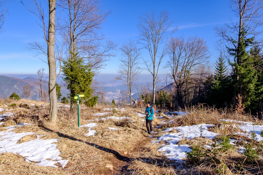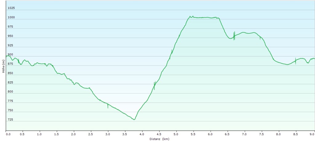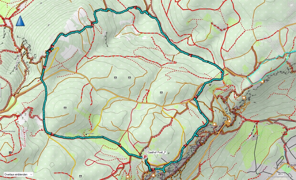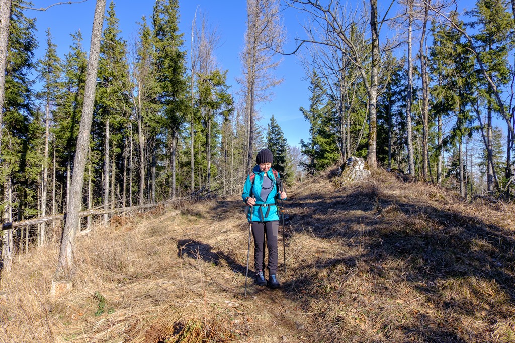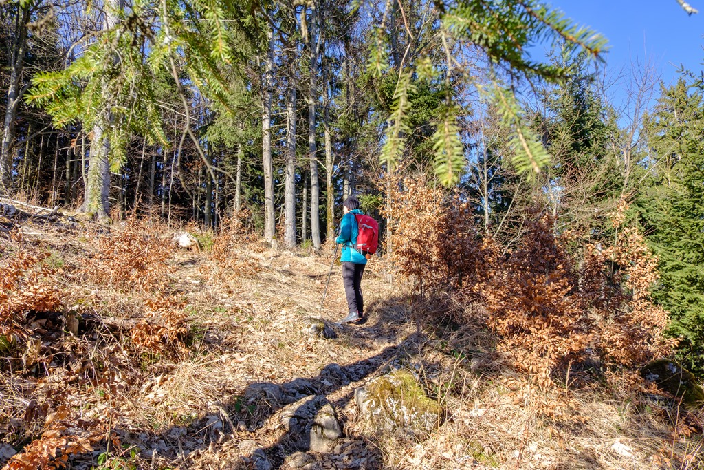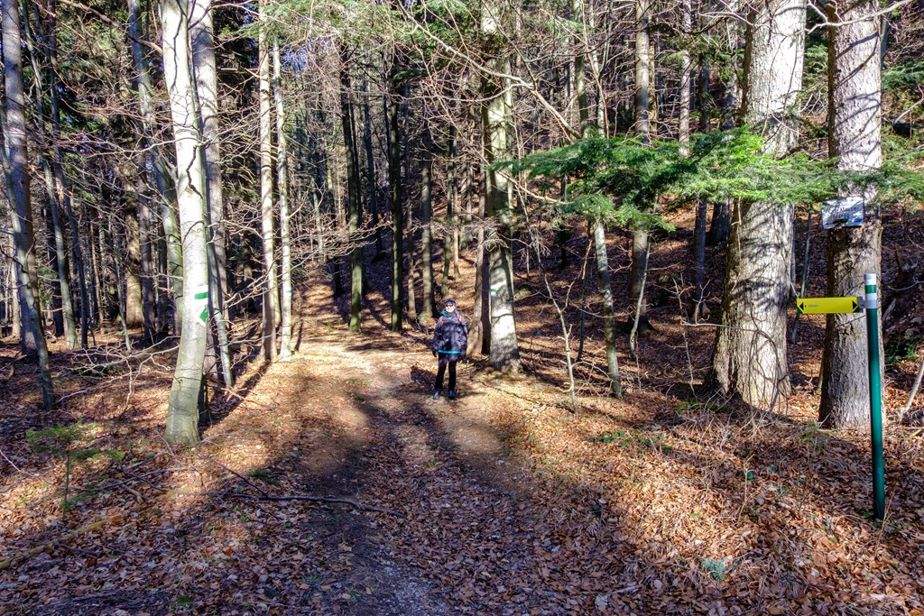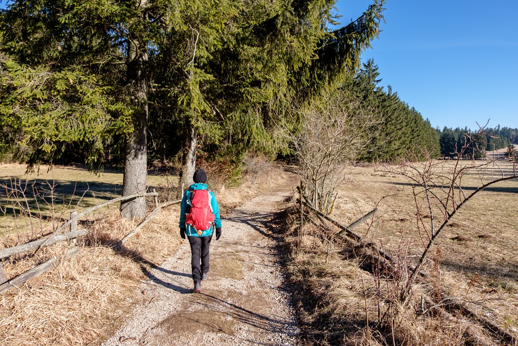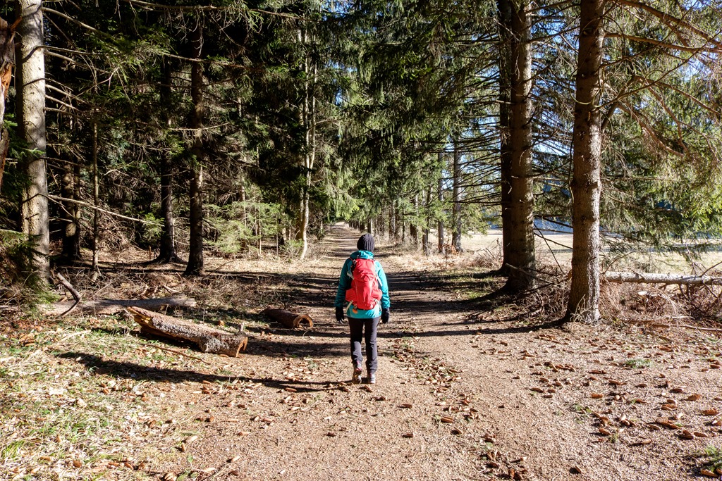 A Gasthof Postl előtti parkolóból indulunk és a tulajdonképpeni RWW1 (azaz a Rund-Wander-Weg 1) jelzésű körutat követjük. Ott ahol akadálytalanul süt a nap, a kellemes langymeleg behatol a ruhák rétegei mögé, amik a fagyos délelőttöt lennének hivatottak kivédeni. Az erdők alján tudniillik még azért jól érezteti magát a január, helyenként a talaj is jeges, bár hó, vagy hófoltok nincsenek. Csak a Kohlmais (1005m) csúcsa alatt lelünk egy rövid szakaszon jégburkolatú útra és némi megtizedelt fehérségre.