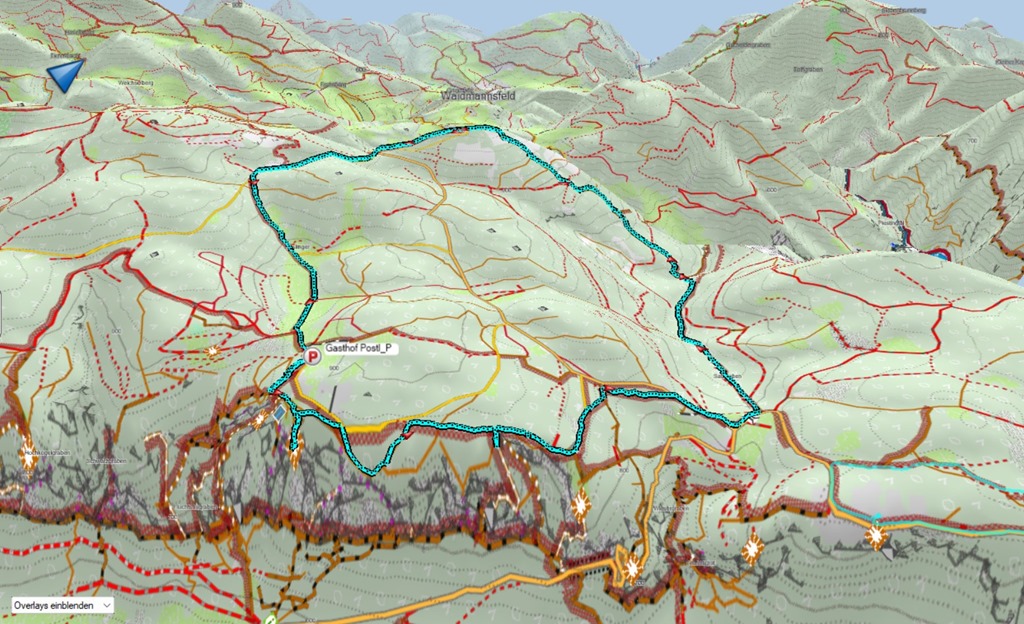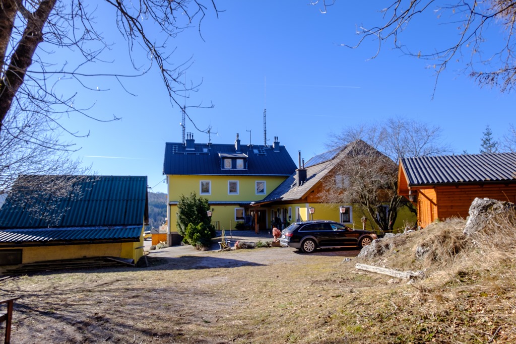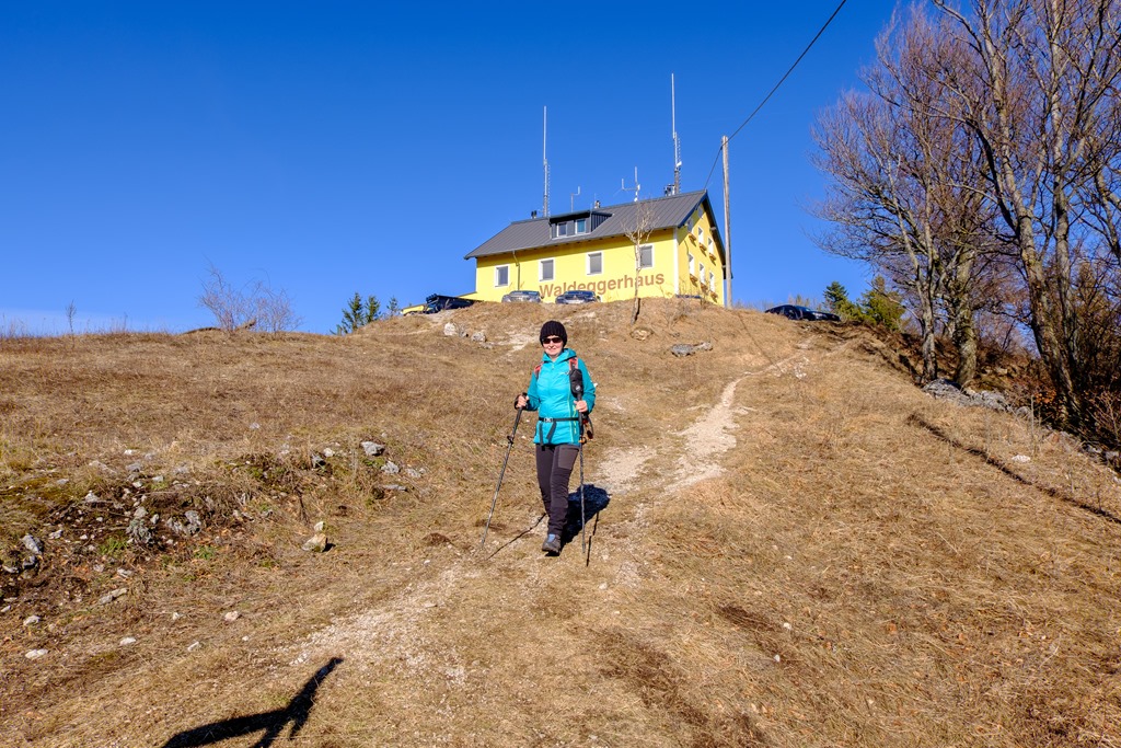 A Waldeggerhausban eltöltünk egy derekas órát, majd a ház előterében, szép kilátóban, fényképezkedünk a Schneeberggel (lenti képek), meg a remekül látható Ötscherrel. A visszaút elég rövidre sikeredik. Elvileg a Gasthof Postl és a Waldeggerház közti rövidrezárt legrövidebb összeköttetés.
