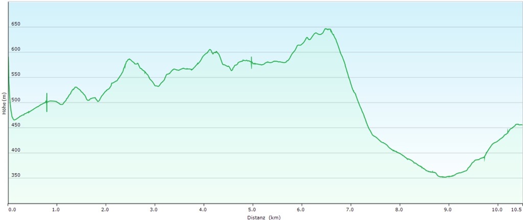 A séta megemlítésre méltó különlegessége, hogy odafenn, a platón, elhagyjuk az unalmas, széles erdészeti utat és egy érdekesebb és főleg érdemesebb vonalvezetés mentén, a hegy gerincén, két helyi kis csúcsot érintve, egy keskeny ösvényen vonulunk az erdőben déli célunk, a Höllensteinhaus felé (lenti képek).