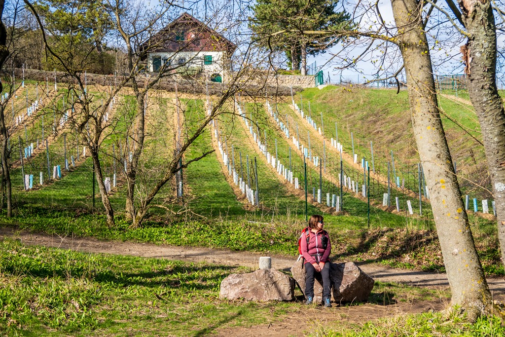 A Perchtoldsdorfer Heide alatti parkolóból indulunk, és még szerencsénk van, hogy találunk helyet, mert bizony egy órával később itt, már majd egy tűt sem lehet leejteni. Első célunk a Sörházhegy (igen van ilyen), azaz a Bierhäuslberg a maga szörnyűségesen magas 488 méterével. Sajnos sört nem mérnek sem a csúcsán, sem pedig a tövében, így hát muszáj tovább állnunk az első útba eső Hütte, a Ferenc-Ferdinándház felé. Korai még betérni, de megjegyezzük magunknak, egy esetleges jövendő alkalomra.