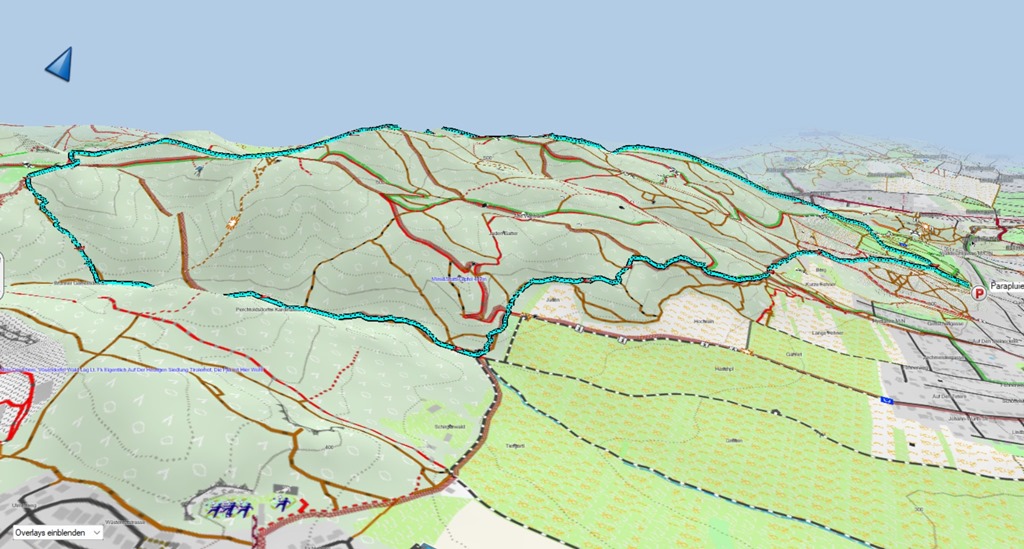 Ezután egy jelöletlen, de jól követhető csapáson folytatjuk a Pararpluie-hegy azonos nevű, 561 méteres csúcsára. Még egy szép kis keresztet is kapunk ajándékba (lásd fenti képeken), amit így fényképen elvihetünk. Le a hegyről, majd újra fel a Hinterer Föhrenberg 581 méteres kiemelkedésére. Itt található a második kunyhónk, a Kammersteinhütte, mellette egy kilátó a Josefswarte.