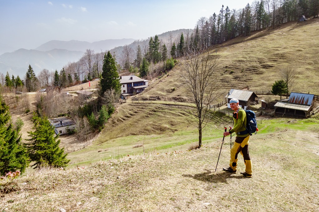 A jól látogatott kunyhó kínálata bőséges, így nem okoz gondot bő egy órán át elpihengetni az asztalnál. Szó mi szó, majdnem 1200 m szint legyűrése után, megérdemeljük a falatokat. Lefelé a Steinparztalban araszolgatunk. Cirka másfél óra alatt érkezünk vissza Hohenbergbe. Remek kirándulás, szép kihívás volt, máris tervezzük a továbbiakat.