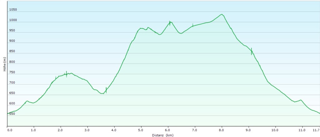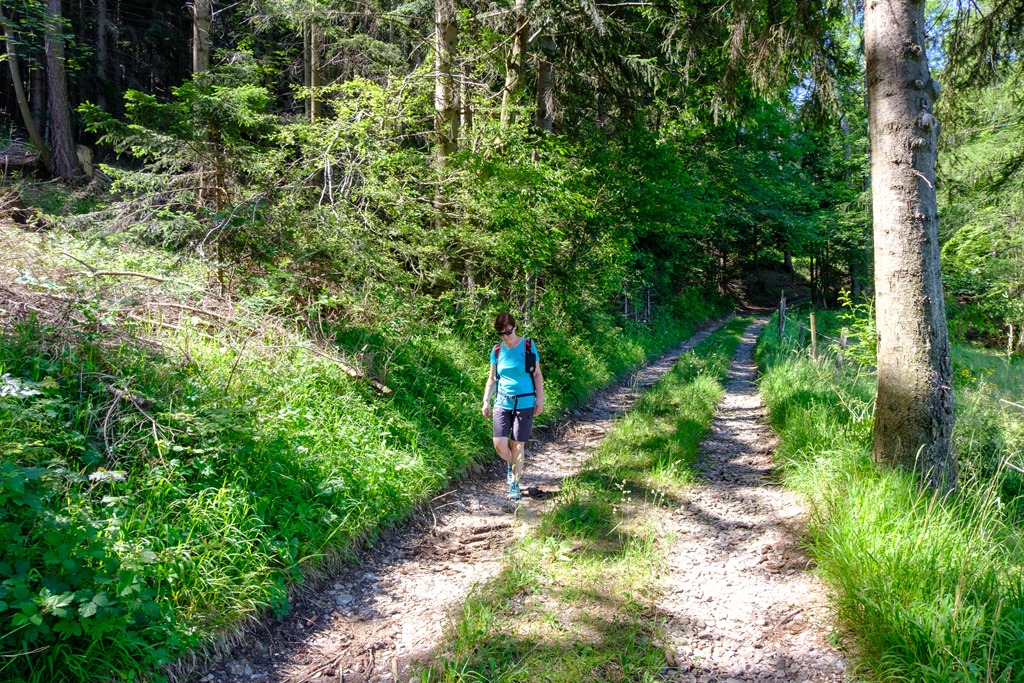 Cirka háromnegyed óra elteltével érünk ki a platón vezető aszfaltútra, melyen balra kanyarodva, még félóra járás a Waldeggerhaus. Itt elköltjük déli elemózsiánkat, majd visszaereszkedünk az aszfaltútra és a jelenleg bezárt Gasthaus zur Kleinen Kanzel felé vesszük az irányt. Még mielőtt elérnénk a vendégházat, jobbra lefelé terelget a völgybe visszavezető kellemes kis turistaút, mely semmiféle meglepetést nem okoz. Így tehát egy teljesen új körúttal sikerült gazdagítani túráim tárházát.