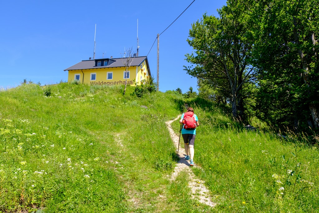Egy nyári kánikulagyanús napon, északi irányból érdemes megközelíteni a Hohe Wand platóját. Így nagyobb az esélye az elcsigázott vándornak, hogy kellemes árnyékos utakra lel. Nos, mi is így vagyunk Angikával, egy számomra is még teljesen ismeretlen úton kívánjuk becserkészni a Waldegger vendégházat, mely tudvalevő a Széncinke (Kohlmais) 1005 méteres lapos csúcsa tövében található.