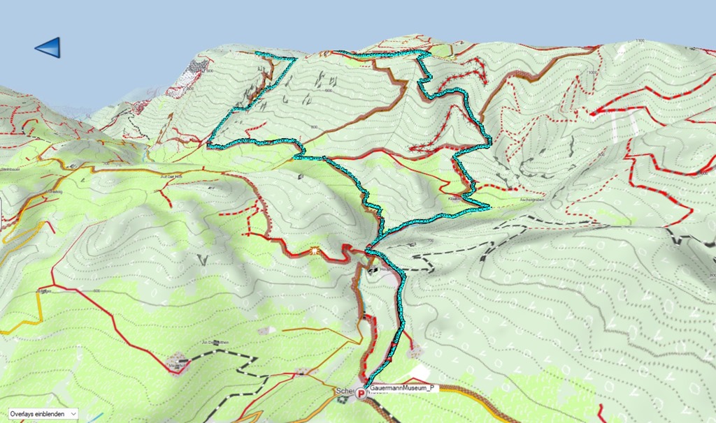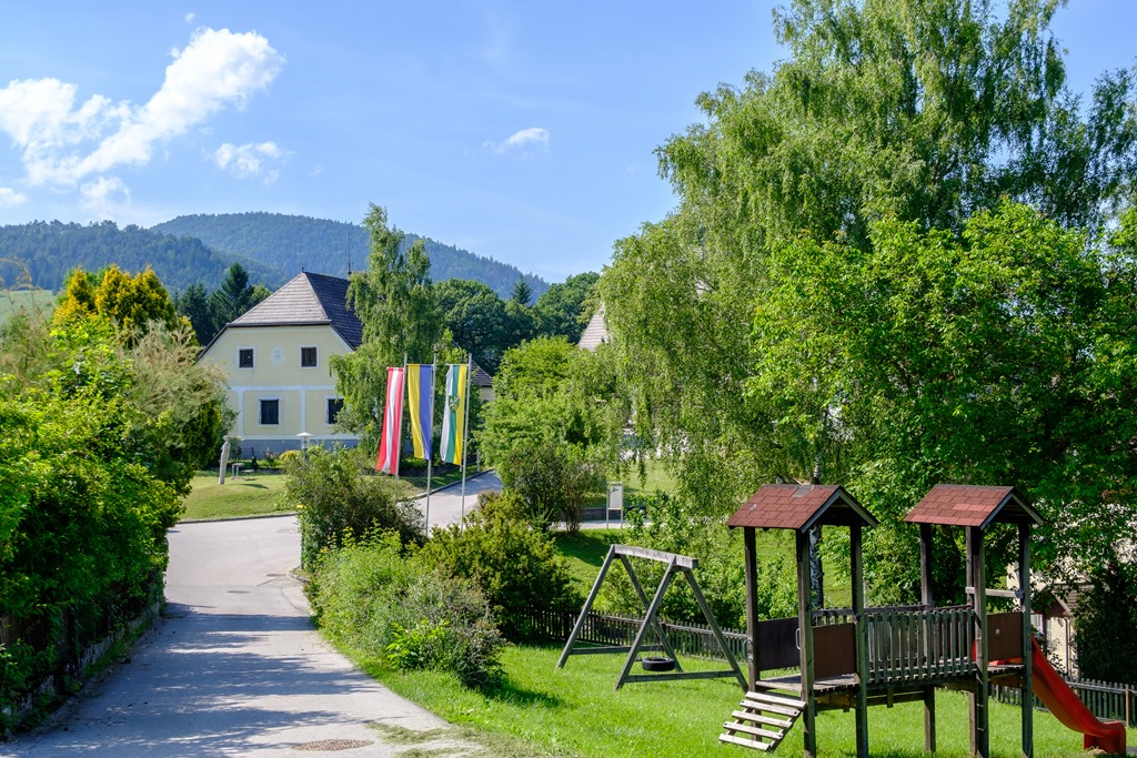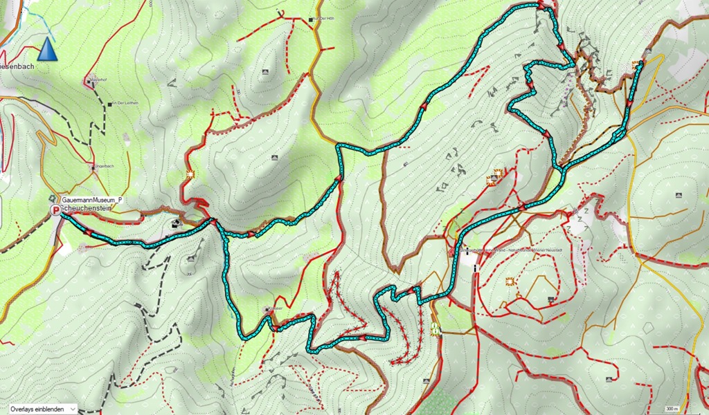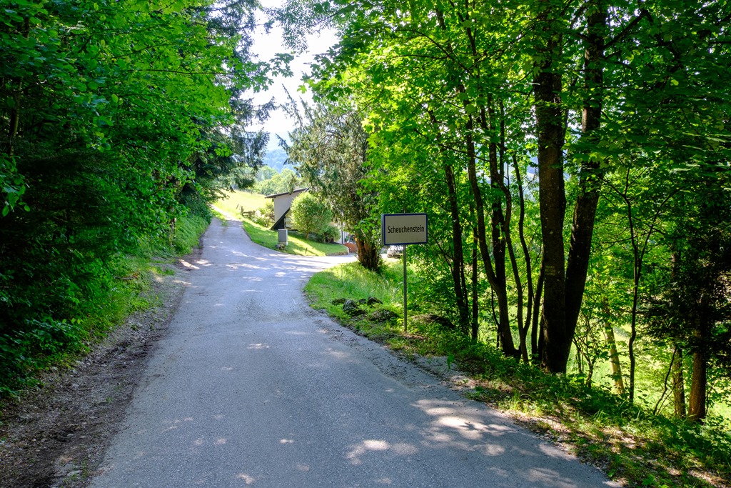 Miesenbach/Scheuchensteinből indulunk, a Gauermann múzeum melletti parkolóból. A múzeum csak hétvégén és ünnepnapokon van nyitva, így, keddi napon, csúcsostromtól nem tartunk. Egy információs tábla valami szép panorámautat ígér, amihez egy még szebb, szurdokban vezető utacska vinne. Csakhogy a szurdok, kőomlás veszélye miatt le van zárva. Mellette, illetve felette vezet egy más aszfaltút, mely szintén kőomlással fenyeget. Később meg is látjuk, hogy miért riogatnak ilyesmivel, merthogy a helybéli Hausberg északi, meredek fala ugyancsak cudar állapotban van. Nem is lenne csoda, ha onnan valami kioldódna. Na, de szerencsére ez a szakasz elég rövidke, sietős léptekkel, pár perc alatt túl vagyunk rajta.