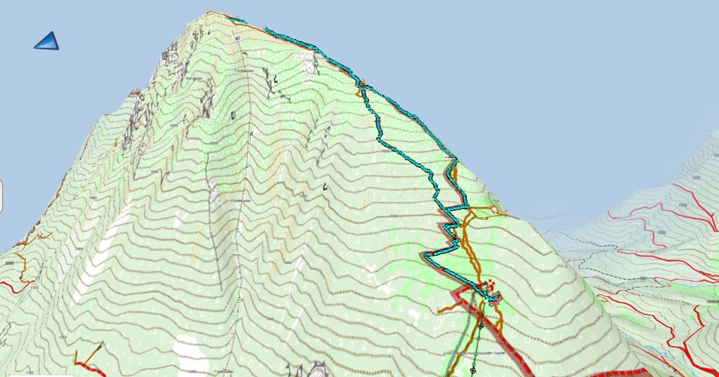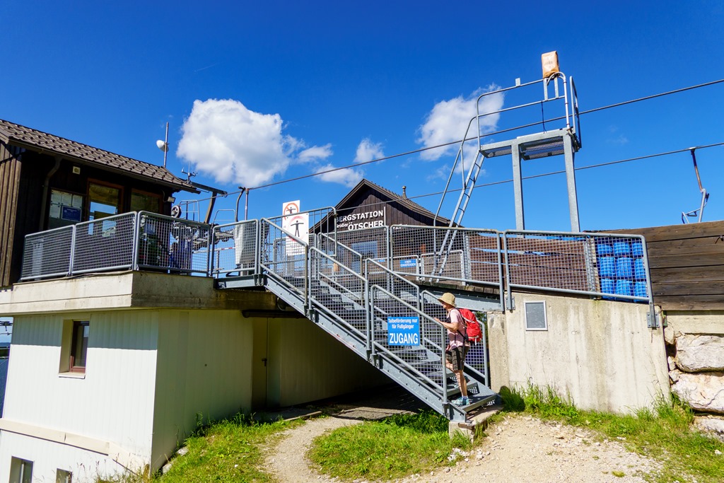 Lefelé valamelyest gyorsabb az ereszkedés, már 1:15 alatt visszajutunk a hegyi állomáshoz. Az Ötscherschutzhausban még elverjük éhünket és szomjunkat, csak ezután ülünk a völgybe visszainduló libegőre.
