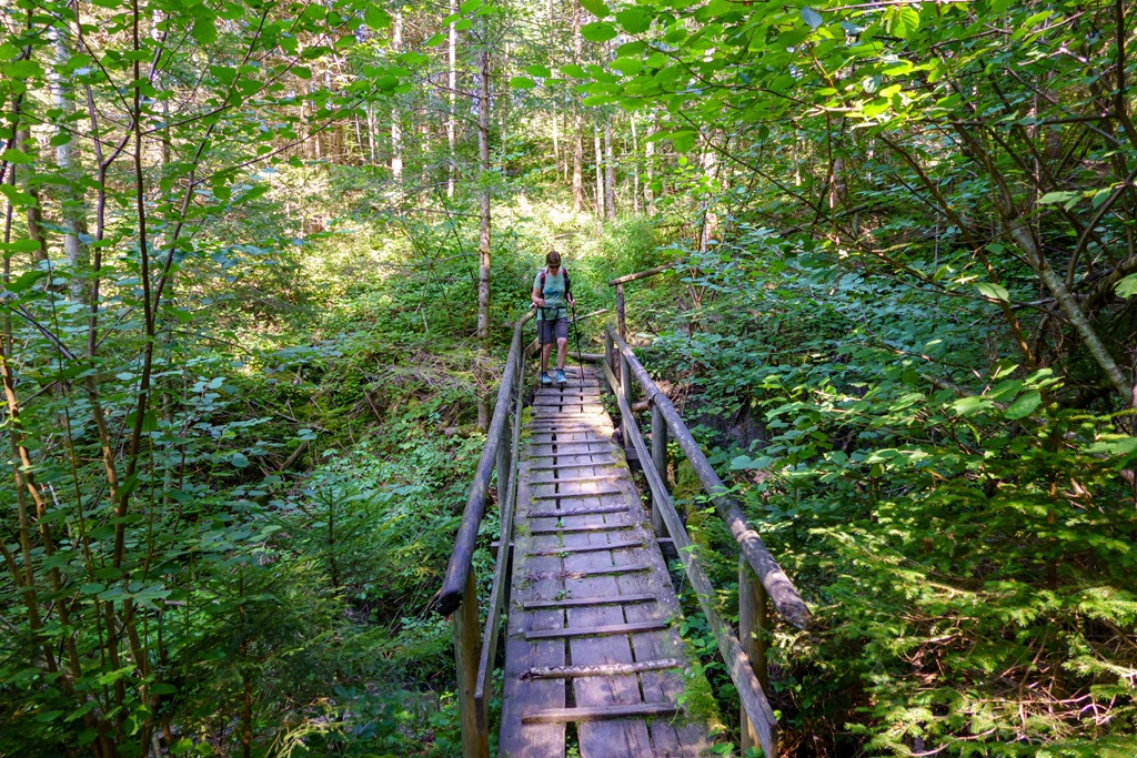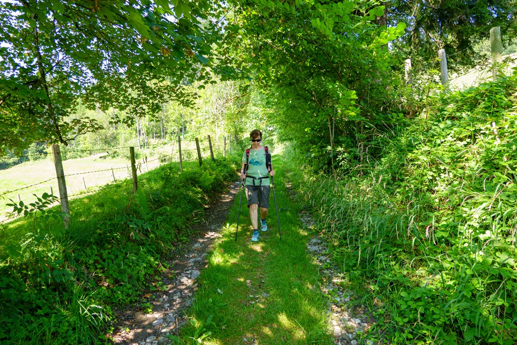 Utunk továbbra is árnyékos szép erdőkön át visz (lenti képek), így valamelyest vértezve vagyunk a nap heve ellenében. A Seehofot elérve, az ebédünket a vendégház hatalmas fák árnyékában levő teraszán költjük el.