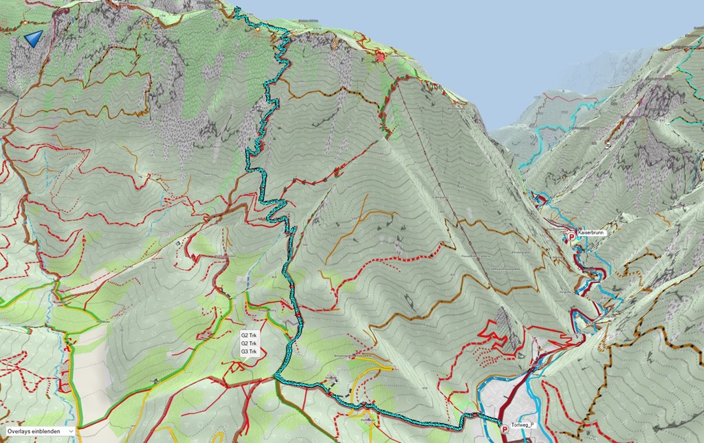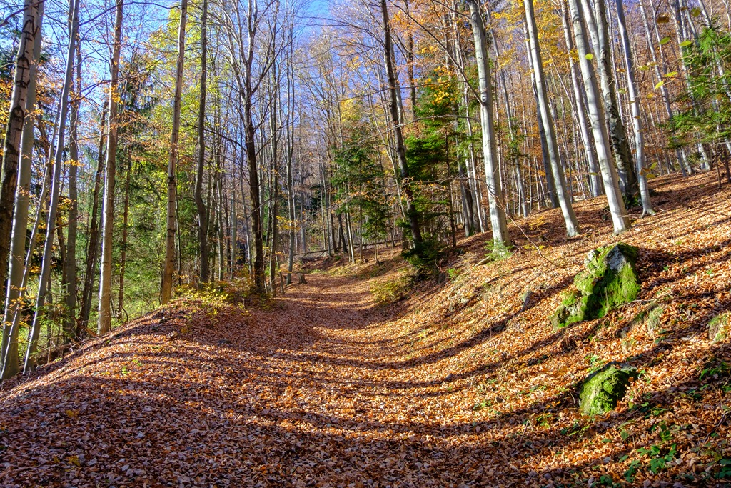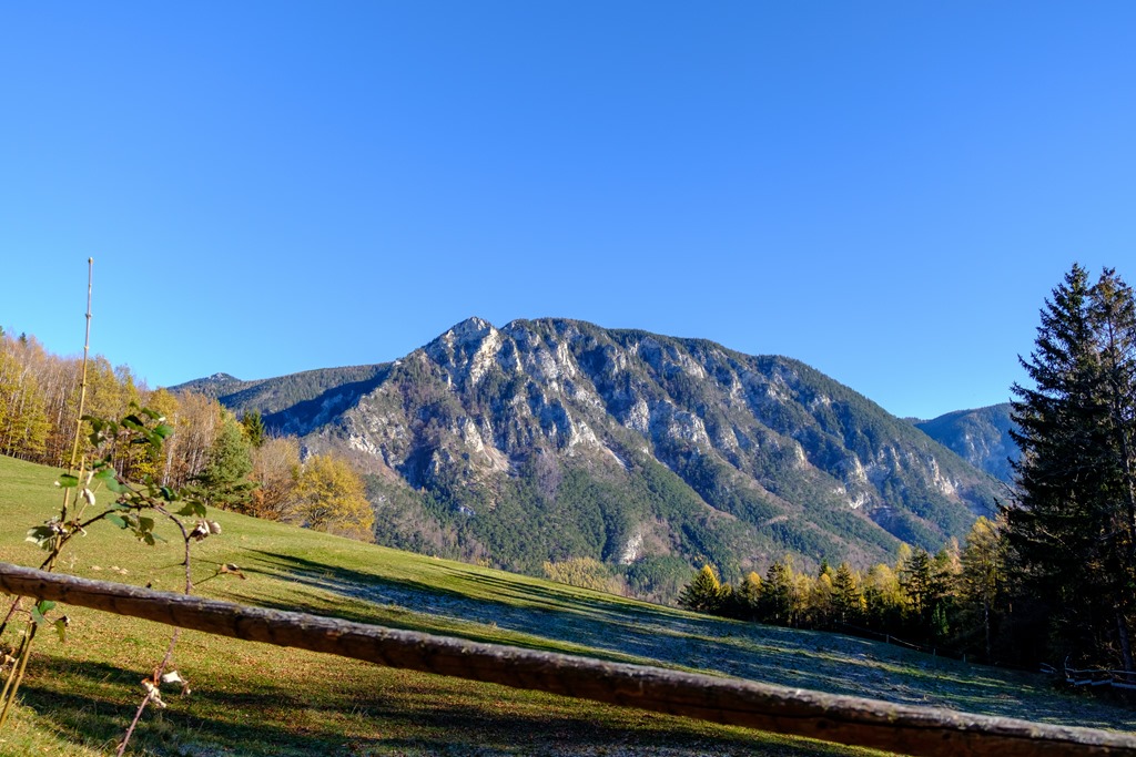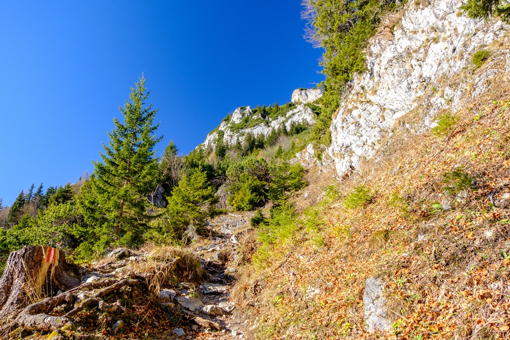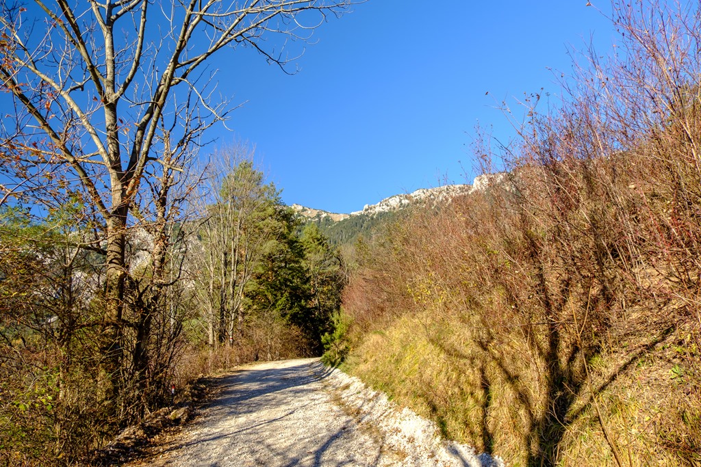 A túra a Törlwegen, nem új. A repertoáromból azért választottam, mert déli oldal és itt kaptatva mindvégig élvezni lehet az egyre gyengülő nap kellemes erejét. Ilyen meggondolás alapján jövök le ugyanitt, tudniillik lefelé a Gsolhirnsteig kínálkozna alternatívaként, de felső része a hegy árnyékában fut.