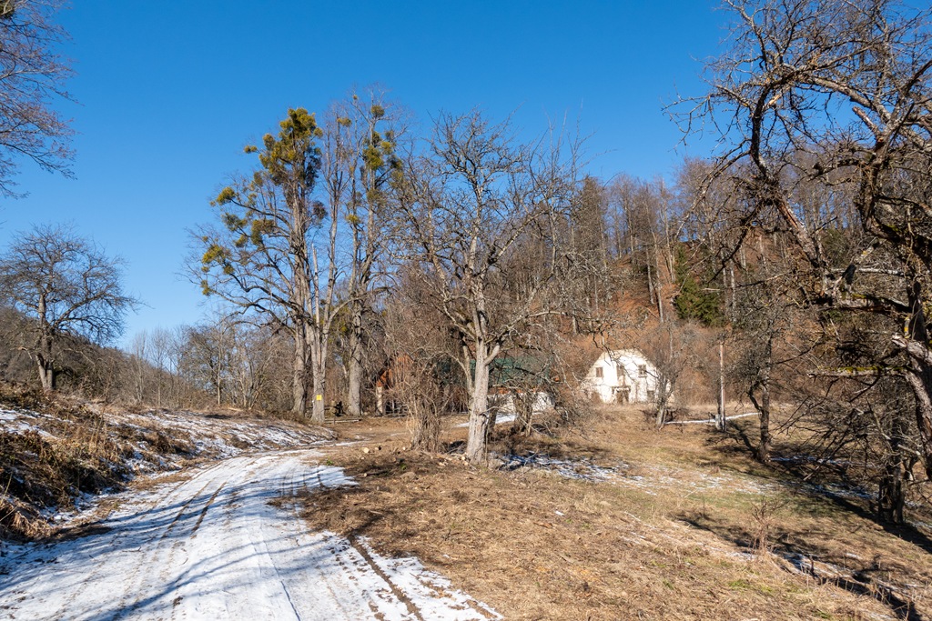 Reggel amikor elindulok, valóban találok is egy vékonyka réteg havat, ami telet dalol a fülembe. Tudniillik olyan hangosan csikorog a fagyban, mintha ki tudja, milyen nagy és kemény tél lenne. Bizony régen hallottam ilyet! Kis gond, reggel, milyen öltözéket válasszak, mert reggel és a kora délelőtti órákban még -8/-5 C fokos hidegekkel kell számolni, de a jelentések szerint később ezek az értékek plusz előjelre válthatnak. Indulástól délig tehát légy télies, utána meg tavaszias? A nehéz téli bakancsomat azért felveszem és áldom is előrelátásom, ebben a bizonyos csikorgó hidegben, ami nagyjából ki is tart a kunyhóig. Jó két óra elteltével érem el.