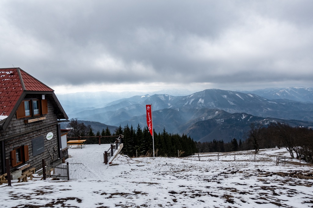 Még megjegyzem, hogy így télidőben, amikor a kunyhók zöme téli álomra szenderülve várja a tavaszt, általában és kevés kivétellel önellátós stílusban viszem magammal hamuba sült pogácsám. Most is csak azért vétkezem, mert ott kínáltatta magát a végcélomban. Vesztemre, be is térek, főleg, mert ugyancsak lyukat harangoznak a gyomromban. Nos, a palacsintás levessel nincs is semmi gondom, de uram bocsá, amit utána kapok az asztalra, az egy iszonyat! Mióta aktívan túrázom, még nem tettem ilyet, mert három kanál után otthagyom az asztalon. Nem is tudom, mi kell ahhoz, hogy egy tál lencseételt ennyire elfuseráljon valaki. Pedig a Traisnerhütte, még a régi haszonbérlő idején, kifogástalan volt minden tekintetben, nem emlékszem, hogy valaha is elégedetlenül távoztunk volna innen, vagy hogy kritikát kellett volna gyakorolnom. Sajnos A “C”-dolog a korábbi haszonbérlőnek is megtörte az életét.