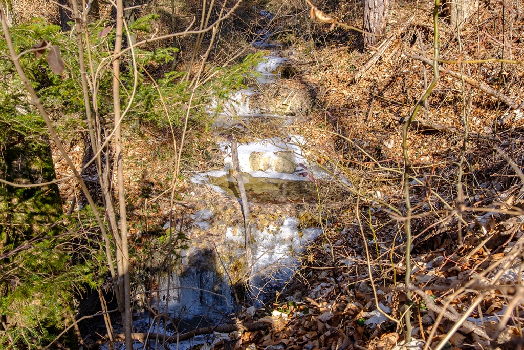 Az útszéli patak még fagyba mervedve