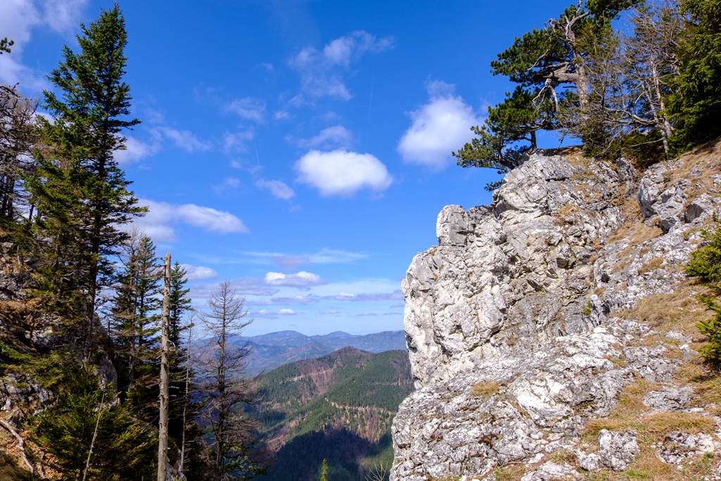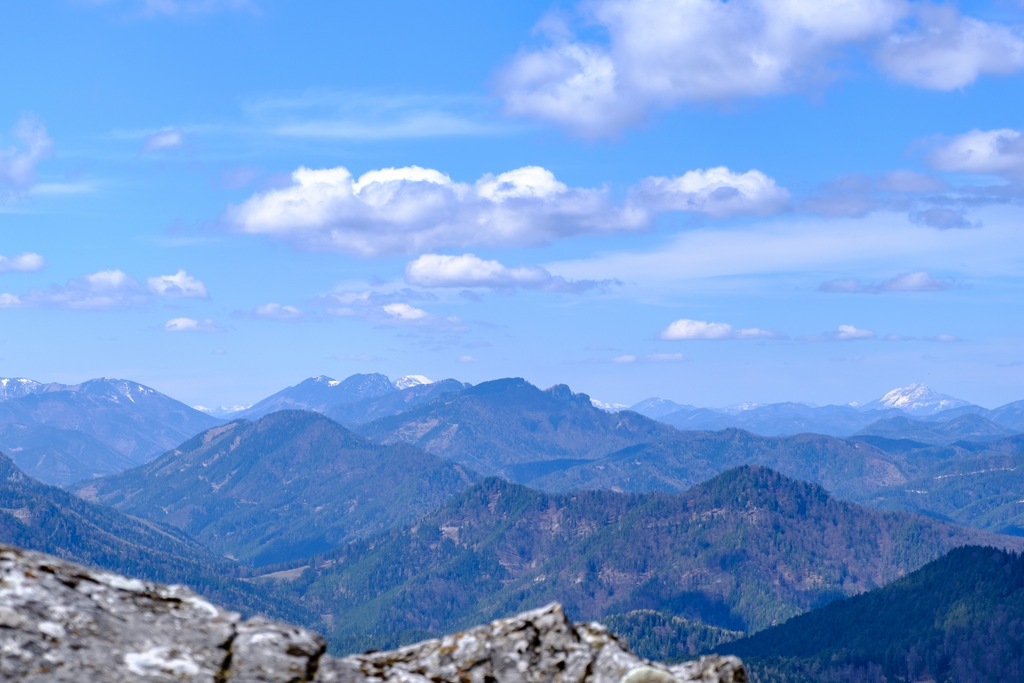 A kép közepén a Göller fehérje kandikál ki, míg jobbról az Ötscher havas lejtői láthatóak