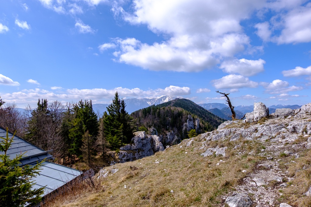 Jól látható a Dürre Wand szép és gyengéd gerince a Schneeberg előterében. Azon haladok majd tovább…