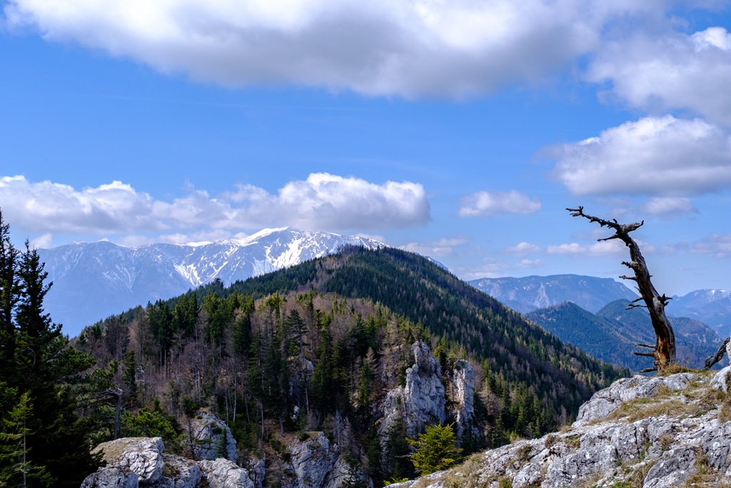 Tavalyi kirándulásom alkalmával elbűvölt a Schneeberg látványa a Ringelwiese lejtőiről visszapillantva. Tudniillik csudás ez a még vakítóan fehér hegy és a sötétebb árnyalatokat felvonultató völgy közötti kontraszt , ami csupán csak így tavasszal látható-tapasztalható. És valóban nem csalódom (fenti képek). Az elmúlt napokban havazott valamennyit odafönn, és ez jót tett a hegy optikájának.