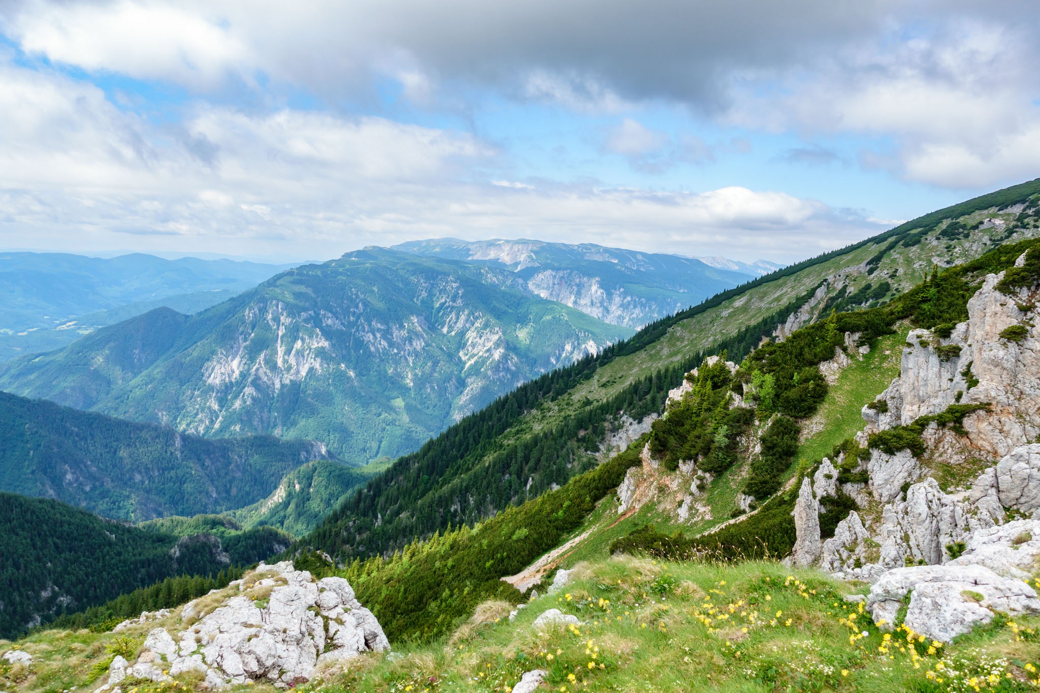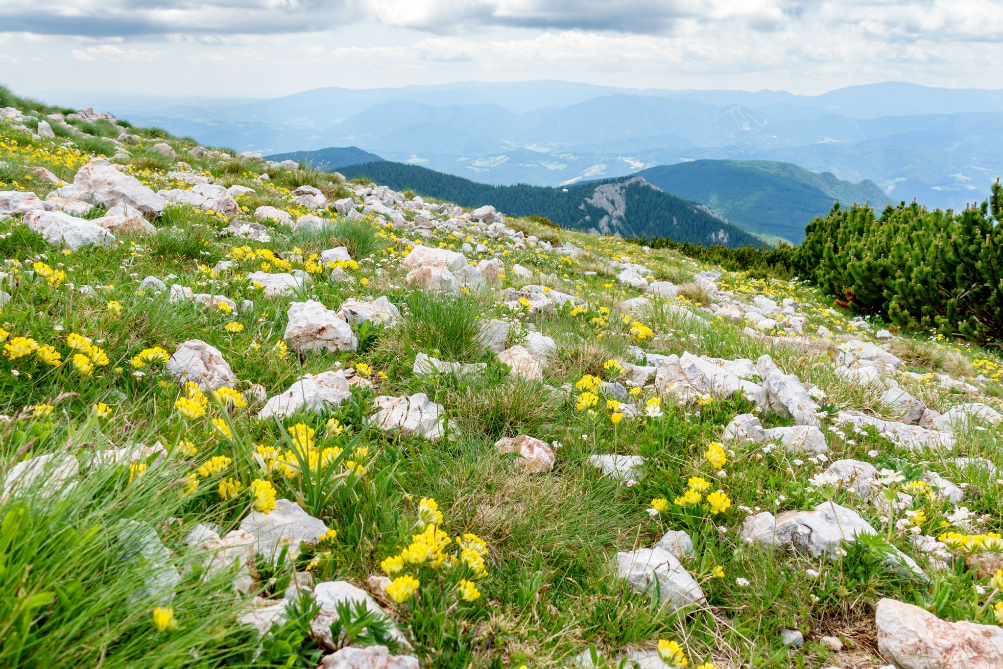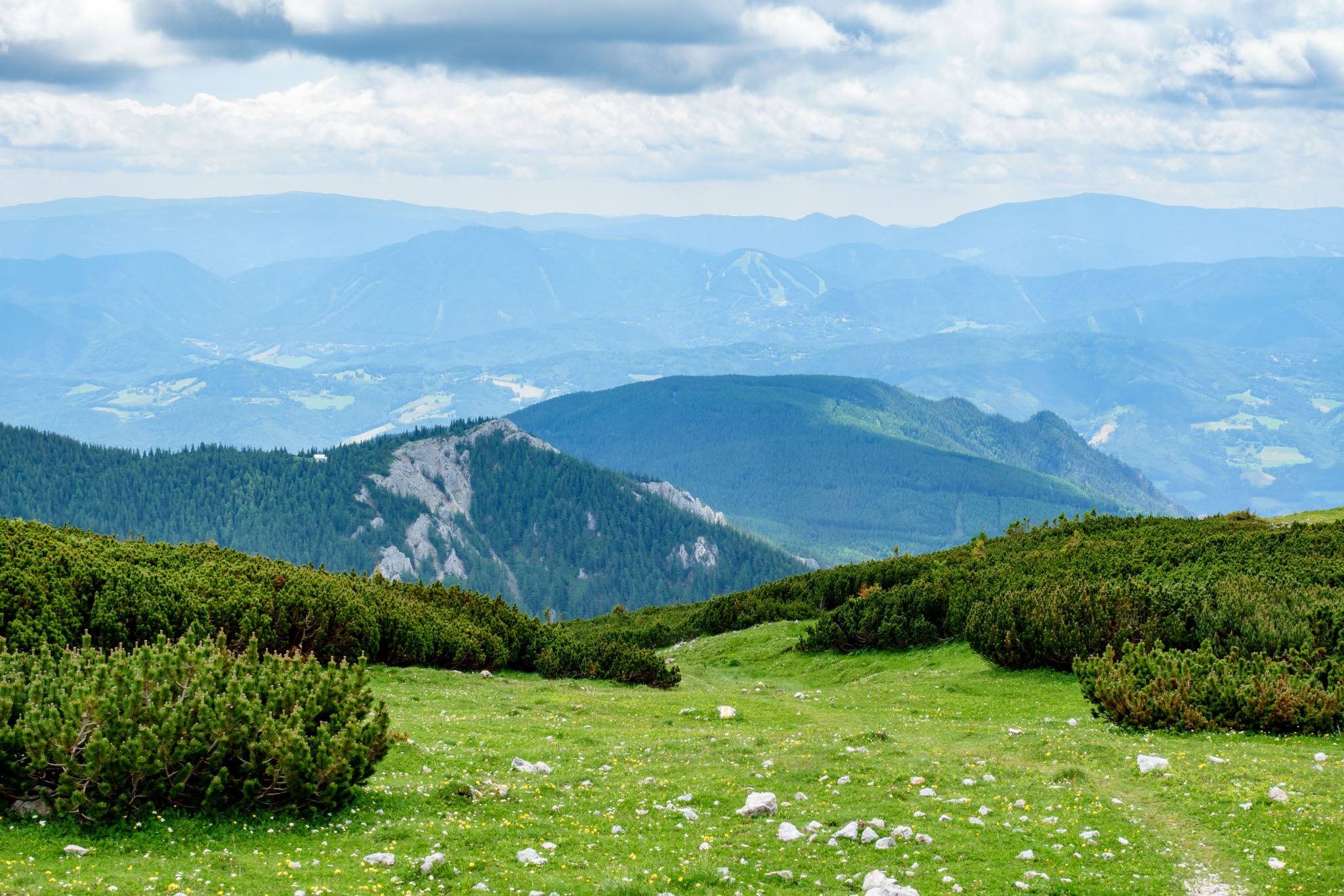 A Schneeberg alatti vidék térképére pillantva jól kivehető, hogy a Rohrbachgraben természetes folytatása nyugat felé a Nesselgraben, ami pedig a Krummbachsattelba torkollik, illetve ott ér véget. Télen, amikor kitölti a hó és a víz megdermed benne, már kétszer is volt szerencsém végigmasírozni a Nesselgrabenon mind felfelé mind pedig lefelé menetben, és most érdekelt, hogy így a nagy nyárban milyen arculatú és hogy használható-e? Hát előre bocsátanám, hogy nem, semmiképpen sem.