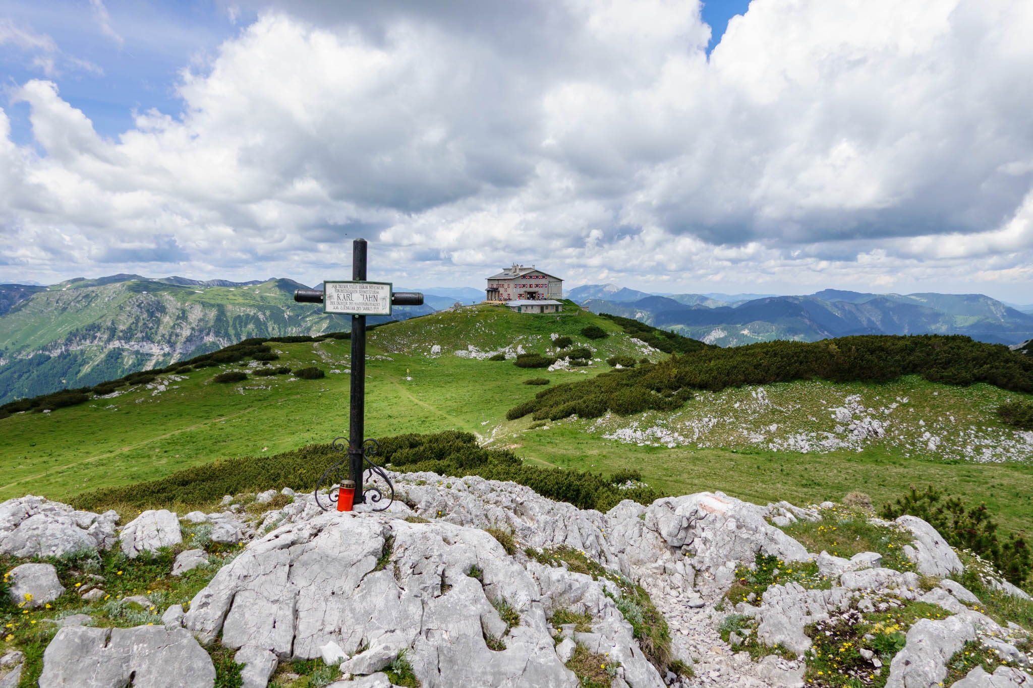 Innen megtudhatjuk Karl Jahn a Habsburgház (Rax plató) gazdájának, a különösen tragikus sorsát is, amire egy vaskereszt emlékeztet, cirka 3 percnyire a vendégháztól. 1919 február 8.-án -22 C fokos fagyban, hóviharban fagyott meg a szerencsétlen a jelzett helyen. Hátán 25 kg élelmiszert cipelt a Karl Ludwigházból a Habsburgházba, ahová már sajnos nem érkezett meg. Február 11.-én leltek a holttestére. Az élelmiszercsomag még mindig a hatán volt. Hja, akkor még voltak telek. Alább saját képeim a Karl Jahn keresztről.