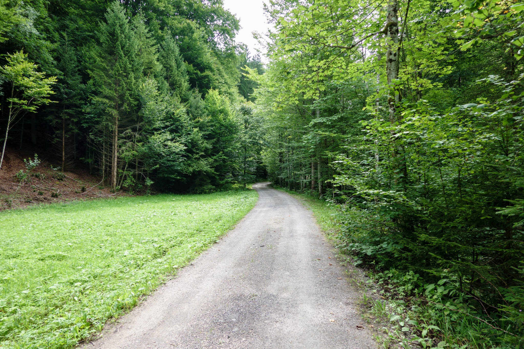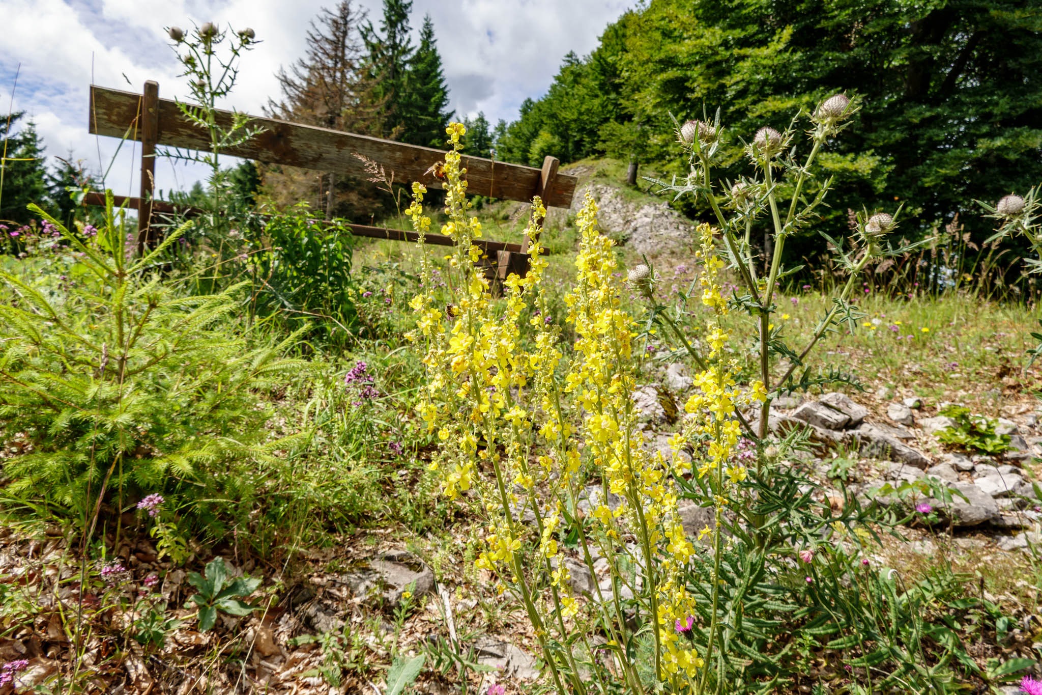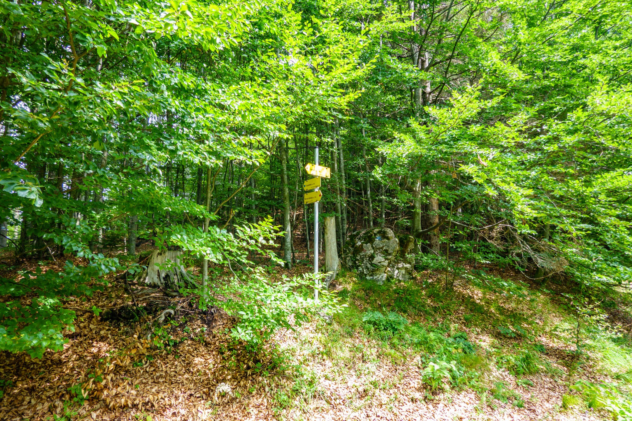 Egy erdei szakasz jön, ami még jól járható, de később, ahol korábban kivágták az erdőt és most a természet rohamos gyorsasággal veszi át a terepet, elég vesződséges. Őszintén ajánlanék mindenkinek, aki erre téved, egy metszőollót, hogy a helyenként áthatolhatatlan bozótosból a szó szoros értelmében kivághassa magát. Úgy nézem, az útfenntartó alpesi szervezetek nem igazán törődnek vele. Szerintem egy-két éven belül úgy elburjánzanak a bokrok, hogy végleg áthatolhatatlan lesz (segédlet nélkül).