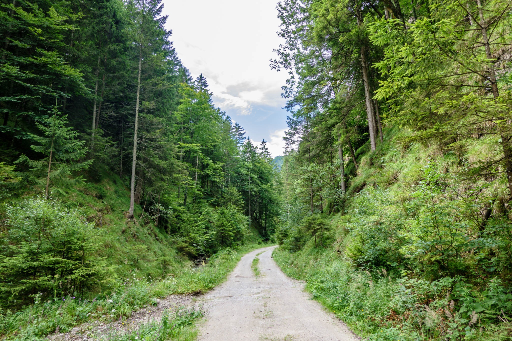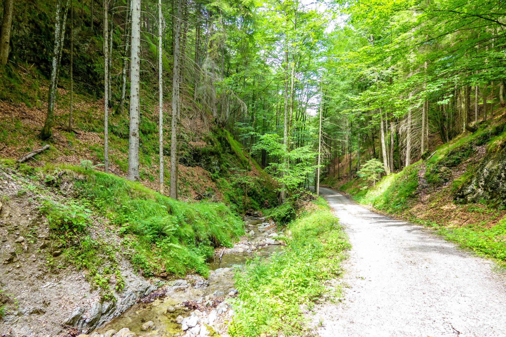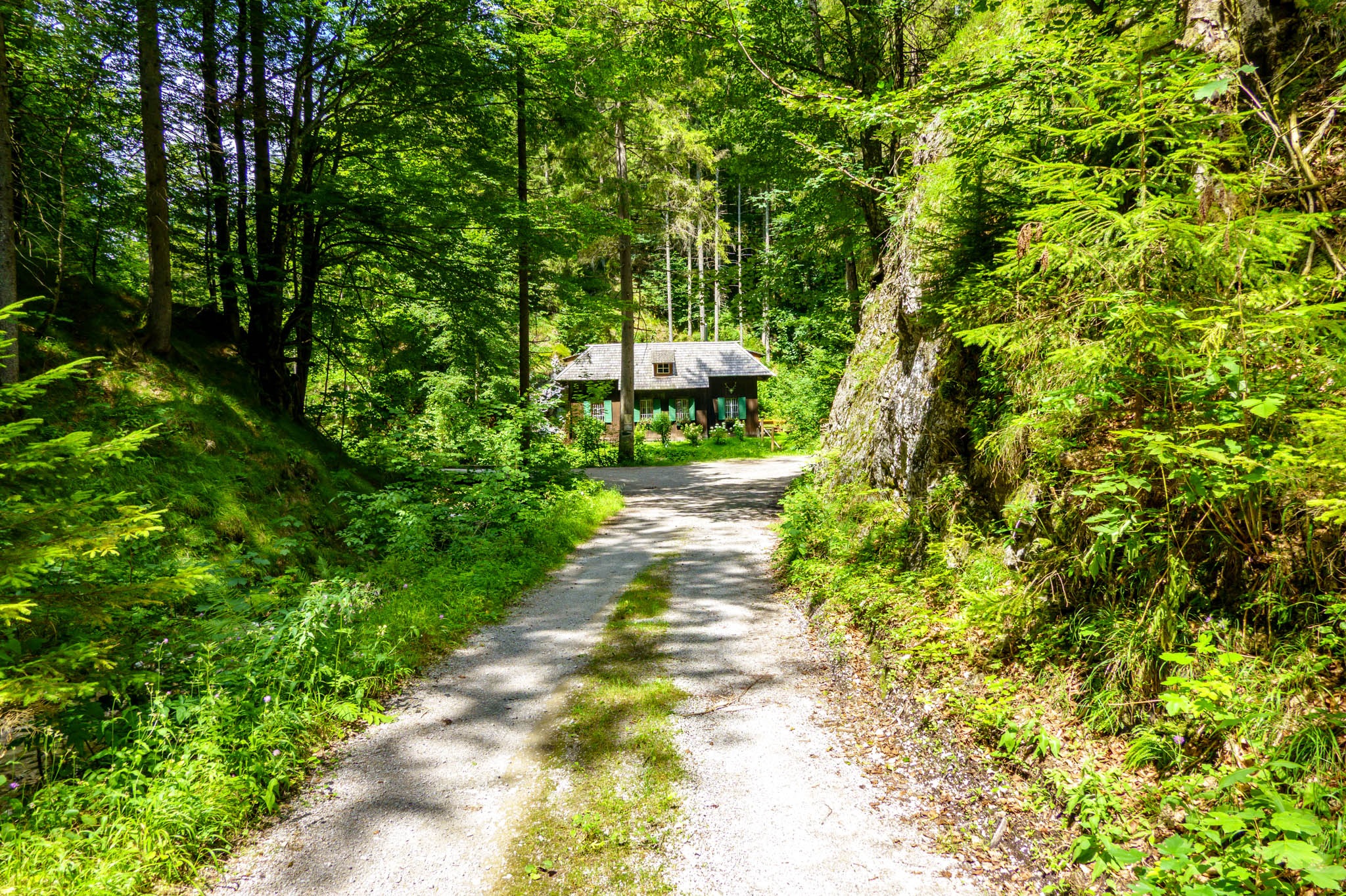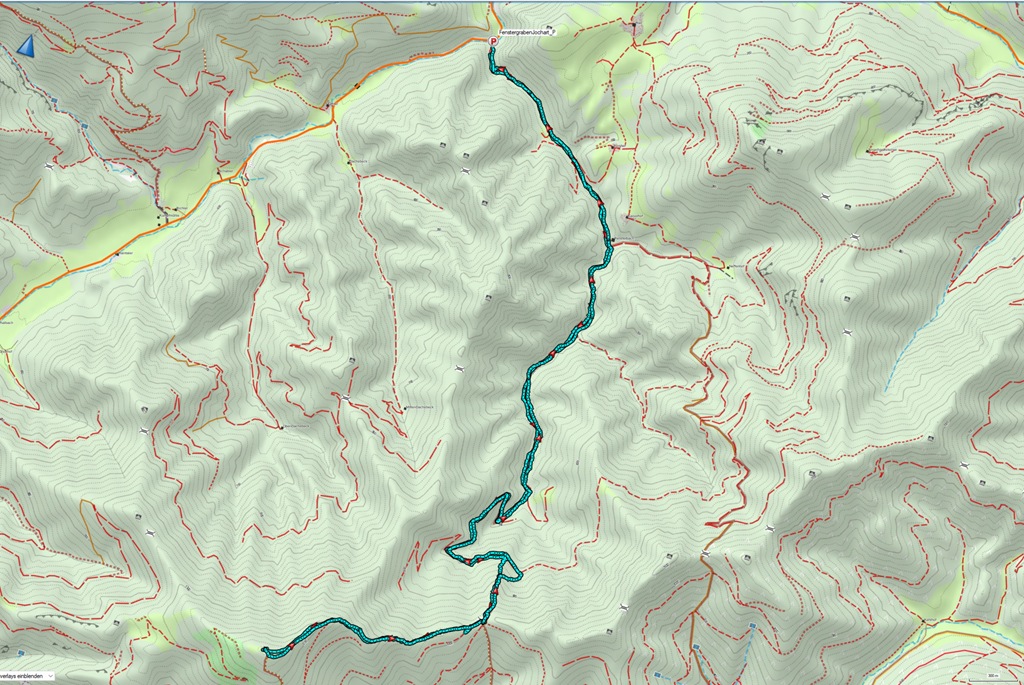 Az útvonal első négy kilométeren széles erdészeti úton enyhén emelkedik egy vadregényes árok mélyén. Majdnem végig elkísér egy hol halkabban, hol meg hangosan csobogó patak, a Fensterbach. Eleinte lombos erdők alatt kanyarog az út, majd feljebb fenyvesek karéjában szippanthatok friss és üde hegyi levegőt. Az út több helyen is villában válik szét, tehát nem árt előre tájékozódni térkép alapján, hogy merre van a helyes ösvény. GPS használat ajánlott, merthogy az út elvileg hivatalosan is jelzett, de ezek a több évtizedes kék-fehér csíkok már kifakultak, sokszor nehezen észrevehetőek és ilyen elágazásokban sajnos se hírük se hamvuk.