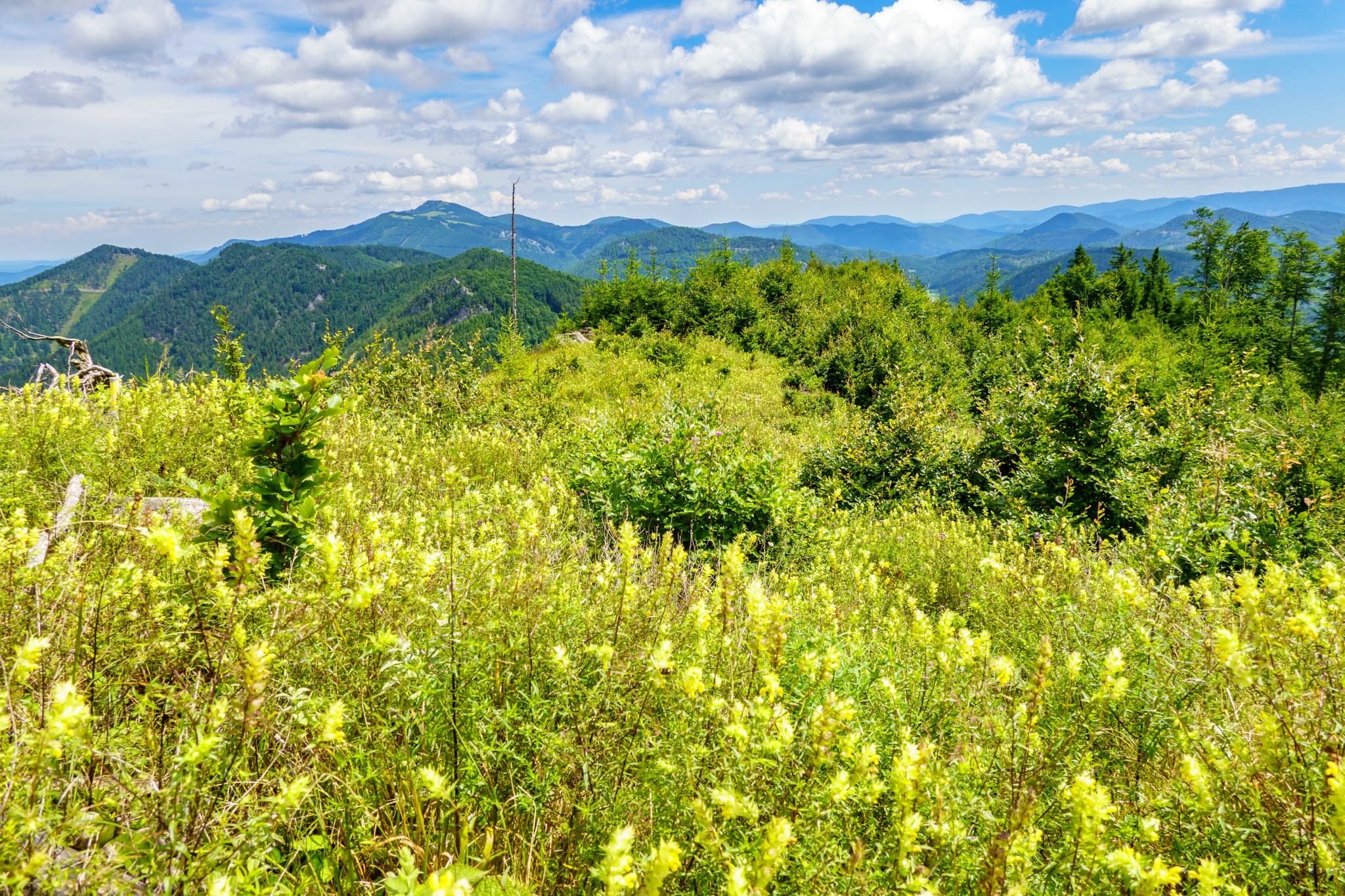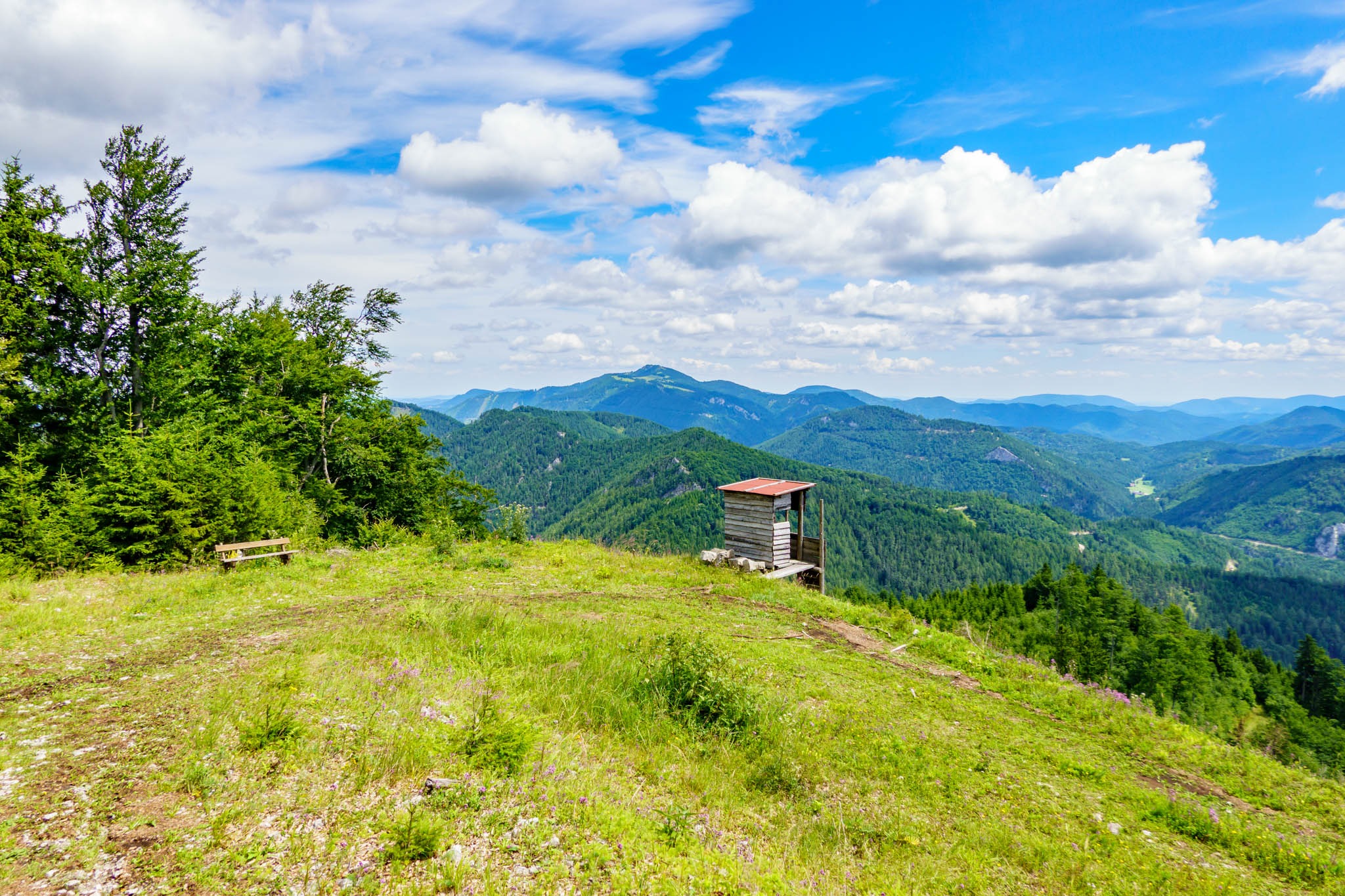 Még csak egyszer voltam az 1266 méteres Jocharton, nyolc éve, akkor csikorgó fagyban, januárban, hótalpakon. Közben teljesen elfeledtem. Nosza, akkor látogassam meg újra, így a szeszélyes időjárással megáldott nyár derekán, amikor nyílik egy elfogadhatóan stabil időjárás-ablak. Most viszont nem a hegyek közé zárt álmos Rohr im Gebirge községből rajtolok, mint annak idején, és mint azt a túrakalauzok ajánlják, hanem északról, Kleinzell/Traisenbeck felől a Fenstergraben szájából.