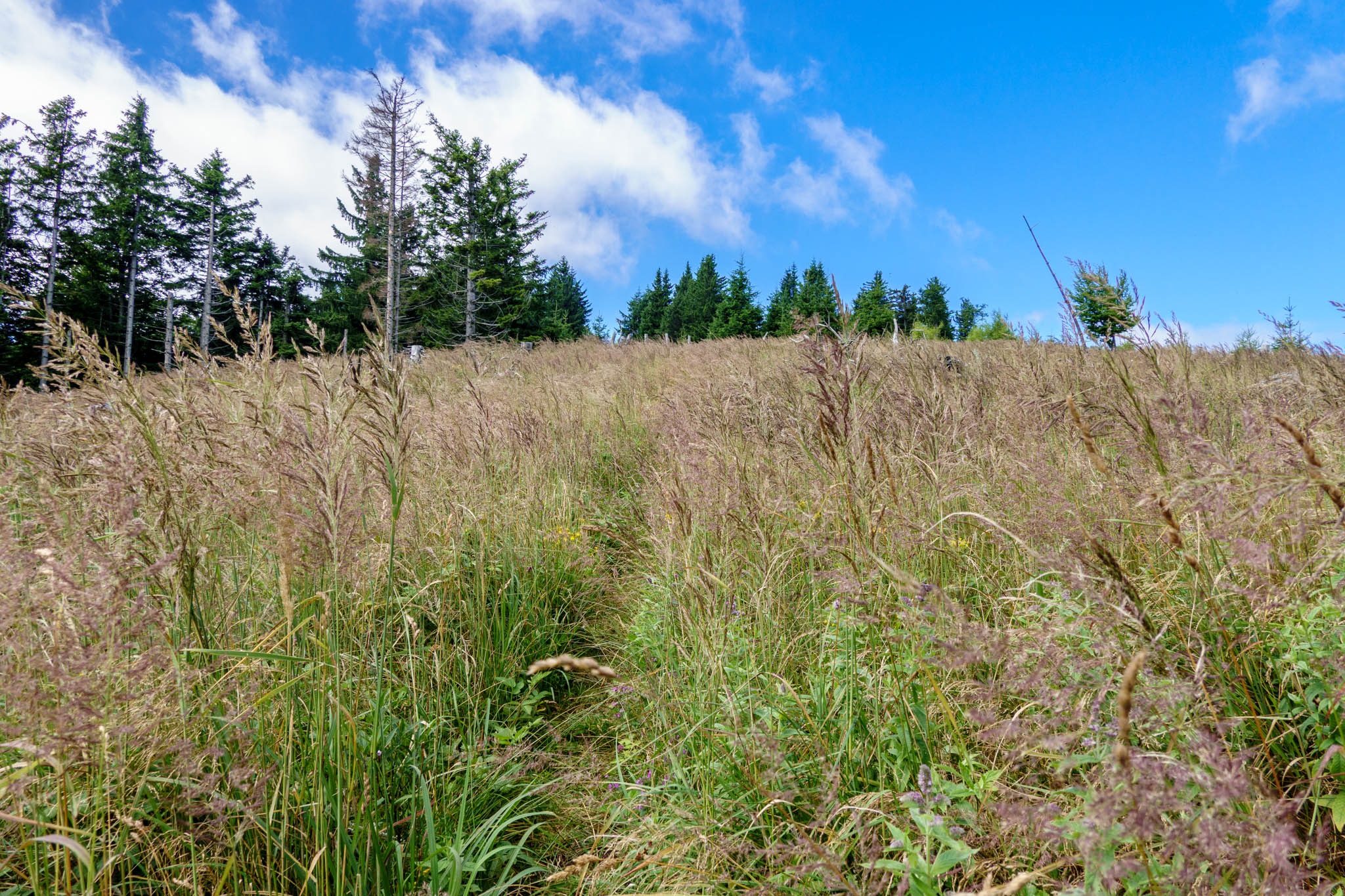 Cirsium eriphorum a rendes becsületes latin neve ennek a sokszor csak óriásbogáncsnak csúfolt növénykének, amivel most tele vannak az alpesi mezők (lenti képeken). Ebből az is nyilvánvaló, hogy lassan de biztosan kezd megvénülni a nyár. Ó igen! Nem tudom, hogy mi köze mindehhez a katicabogaraknak, merthogy alig huppanok le odafenn a csúcson a kedvenc padomra, máris szállnak rám csapatostul. Egész fiatal, szinte maszületett kicsiny katicabogarak. Ilyet még nem láttam. Hessegetem, de sokszor maguktól is tovább állnak. Hagyom hát akkor, ha már egyszer kedvük van rajtam legelészni… Alább néhány benyomás mai vándorutamról.