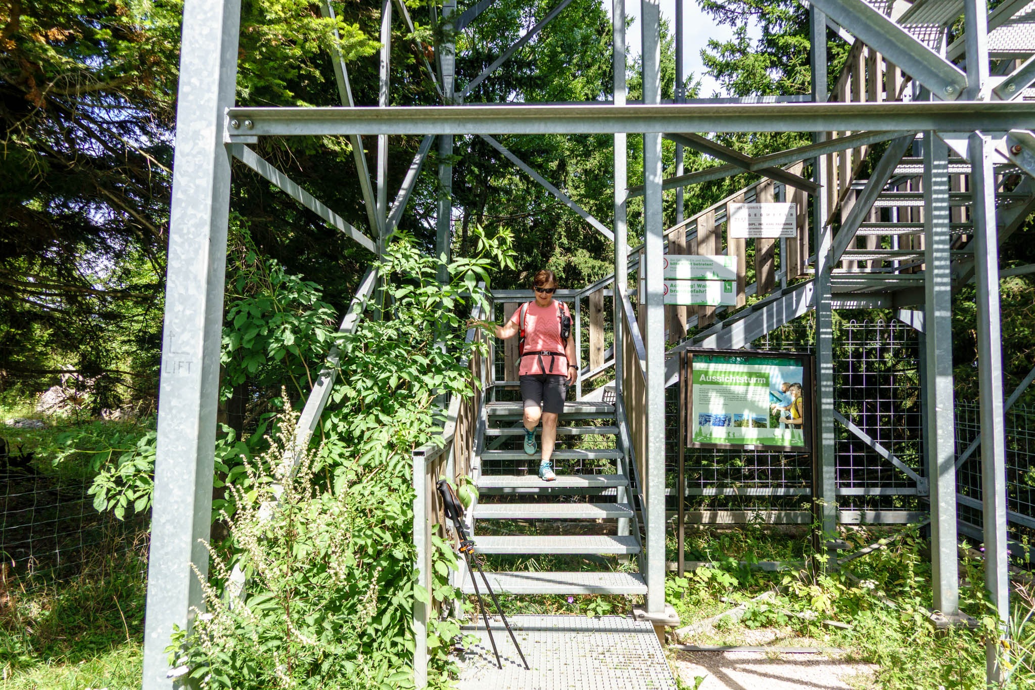 Eme remeknek semmiképpen sem mondható koncepció része, hogy elkerítették a Skywalkot is. Csak azt engedi be az automata, akinek már van jegye, vagy ott helyben fizet. Pedig alkalmanként kicsit feldobta a sétáinkat kikukkantani a szakadék fölé és megbámulni a HTL-Steig vad sziklavilágát. Na, de minden egyes alkalommal körülményeskedni, azért a néhány percért?