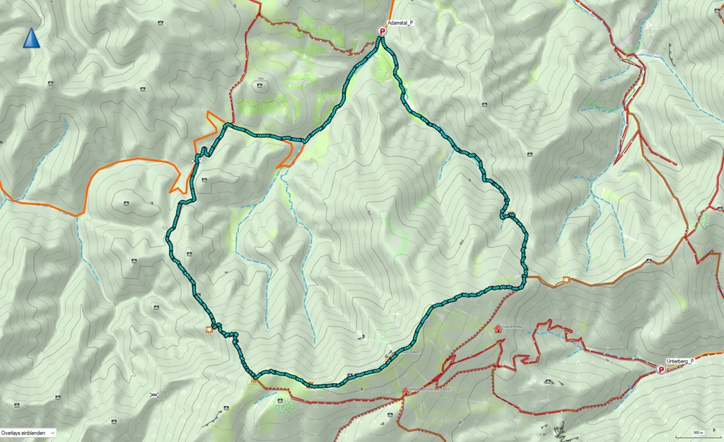 Az Unterberg, azaz a „házihegyem” már nem kívánna meg külön beszámolót. Hacsak! Idén is már számtalanszor felkaptattam tréning gyanánt az 1342 méter magas ormára. De általában déli irányból, a Lamwegtalból, ritkábban egy hosszabb kör mentén a Ramsentalból és egészen ritkán észak felől, mint most, az Adamstalból. Ez utóbbi abban különbözik a többitől, hogy minden tekintetben igényesebb. Tehát hosszabb, több a szintemelkedés és a kilépés előtt a platóra (Blochboden) ugyancsak meredek sziklás lépcsők sorozatán át visz, ami miatt, némi töprengés után, piros kategóriával jelzem.