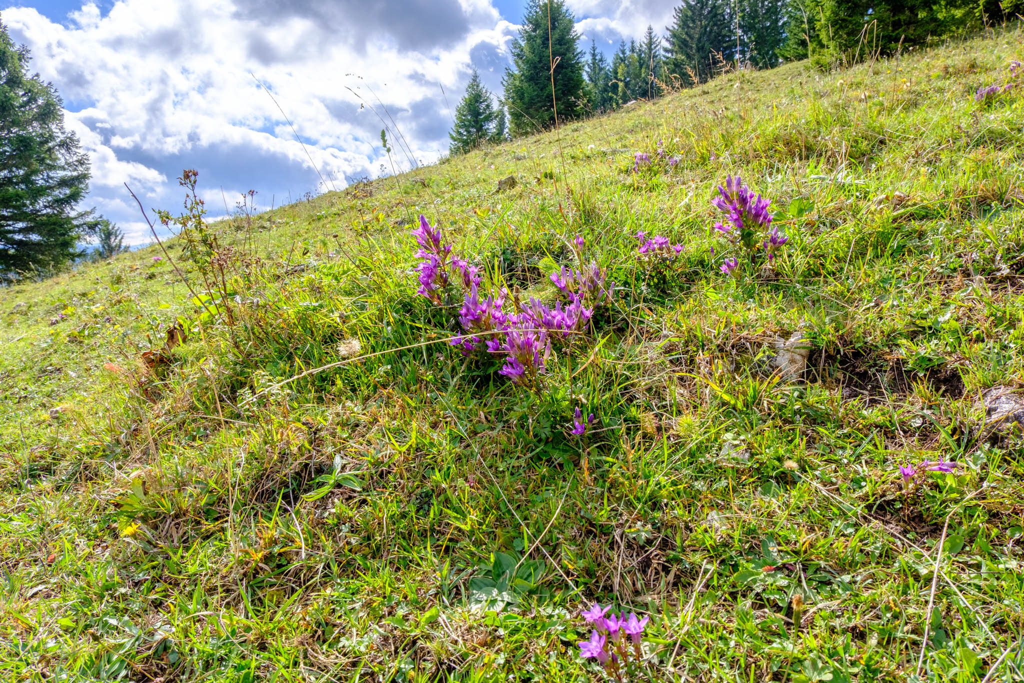 Szó mi szó, a Hochstaff számomra nem ismeretlen. Mégis elvétem a tulajdonképpeni csúcsostrom bevezető szakaszát. Egy bizonyos ponton el kell hagynom a Kleinzeller Hinteralmra vezető széles erdészeti utat. Jobbra felfelé visz egy alig-alig kivehető ösvény. De vajon hol? Merthogy több variáns is adódik, amiből a térképen kettő be is van jelölve. Vesztemre a teljesen alkalmatlant és hibásan feltüntetett ágat választom. Vigyázat! Ereszkedtem pedig már itt párszor, csak éppen máshol. A jutalmam meg annyi, hogy jól összekarcolnak a tövisek.