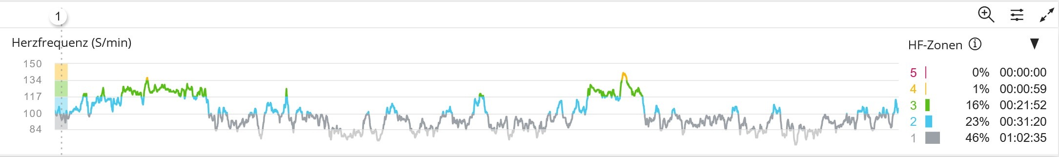 A Polar Grit X2 Pro szerint (fenti ábra) a kaptatásom során a pulzusom 46% részarányban (sic!) volt a legalsó egyes zónában, ami jellemzően a semmittevés zónája. Továbbá 23% a részaránya a sétálás és könnyű testmozgásra jellemző pulzus-tartománynak. Ezek szerint, a mászás kevesebb min egyhatodában (16%) végeztem csak valamiféle gyengéd aktivitást. Nahát!
