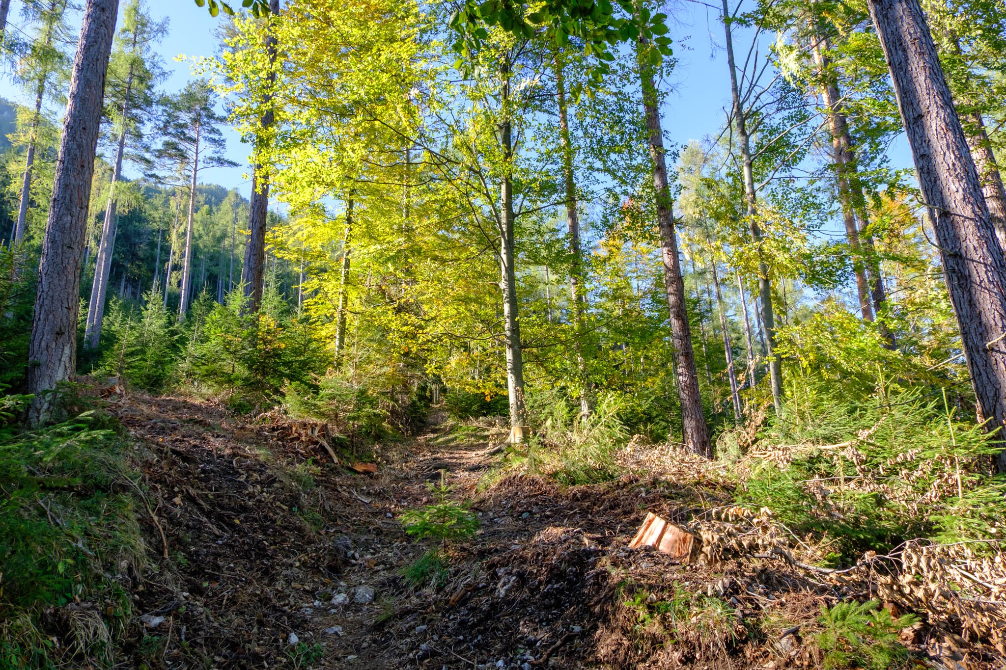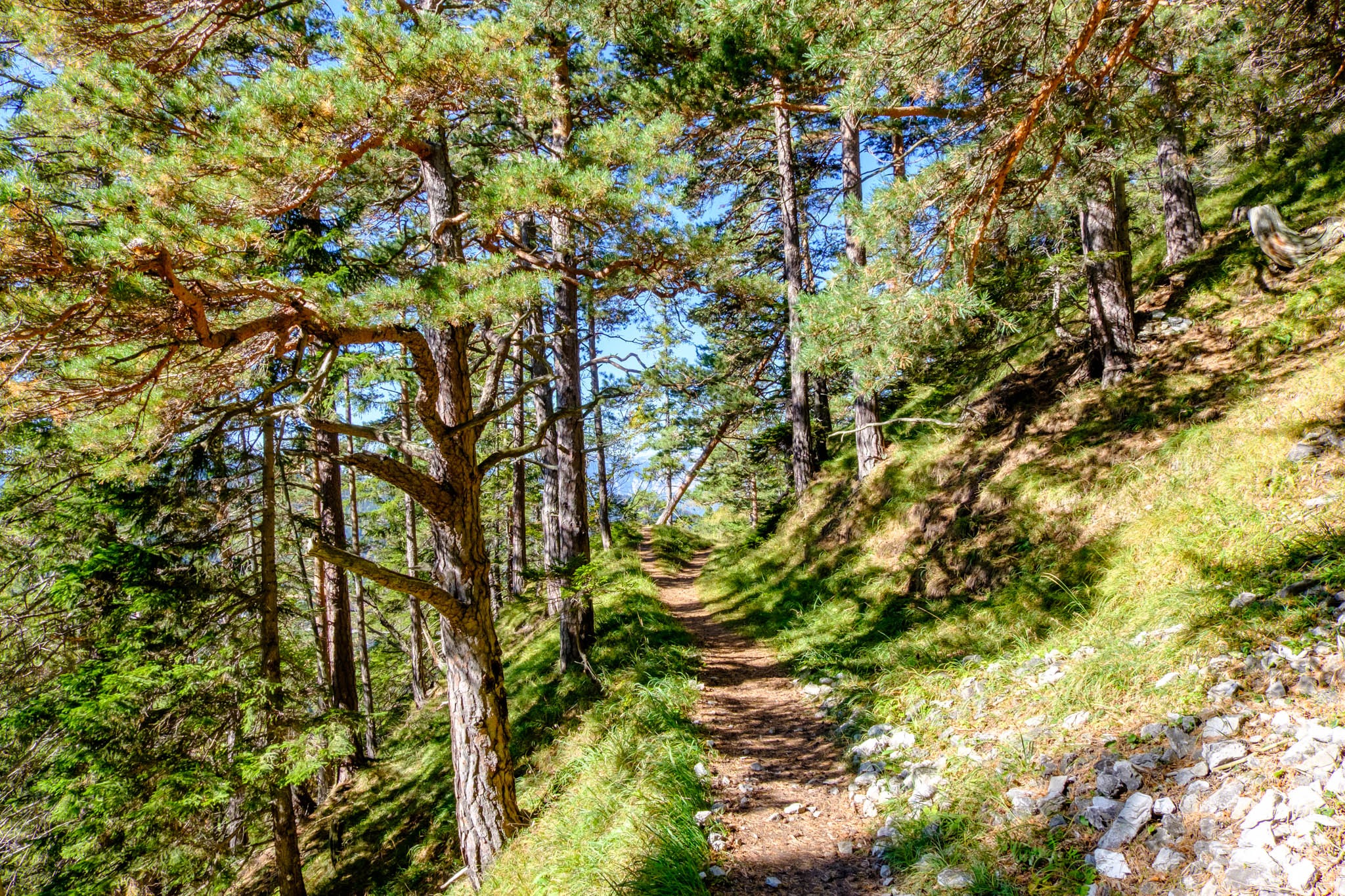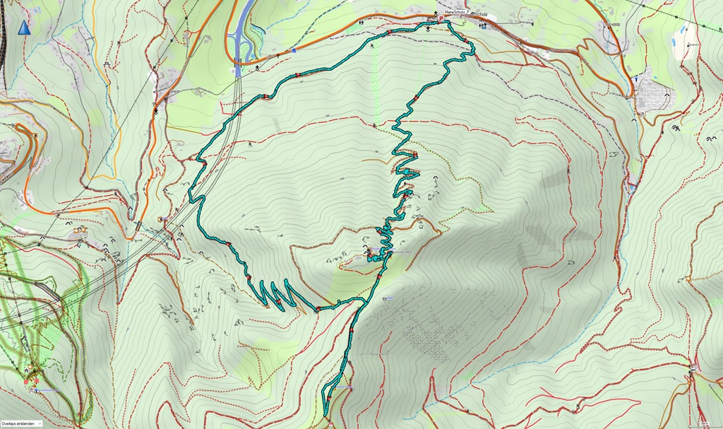 A kunyhó napos teraszán aztán száraz göncökre váltok és immár kellemesen elernyedve tankolom a langymeleg napsütést. A fent említett szélárnyékolás jól működik, mert ha van is légmozgás, az csak formális és nem zavaró. Ebédem után még felkeresem az elmaradhatatlan Erzkogelt, majd az Almsteigen, amit a nyugat felé tartó nap immár bearanyoz, ereszkedem vissza Maria Schutzba.