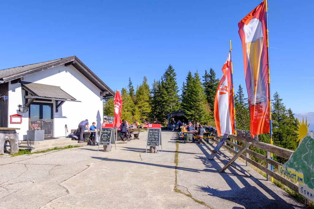 A Sonnwendstein nem összekeverendő a Sonnleitsteinnel, mert bár feljutás szempontjából mindkettő megkívánja a magáét, de az utóbbi mégis vadabb és kunyhó hiányában elhagyatottabb is. Vasárnap lévén érdeklődőkben nincs hiány a Sonnwendsteinen és a csúcs alatti Pollereshütteben. Még sokan ki akarják használni az alkalmat, mert mint a kunyhó bejáratánál felállított tábla is hirdeti, „Közeleg a vég!”. Ez pedig az október 26.-ával esedékes téli elszenderülésre utal.