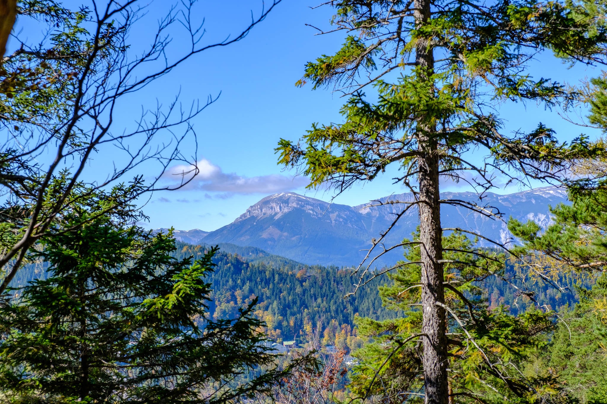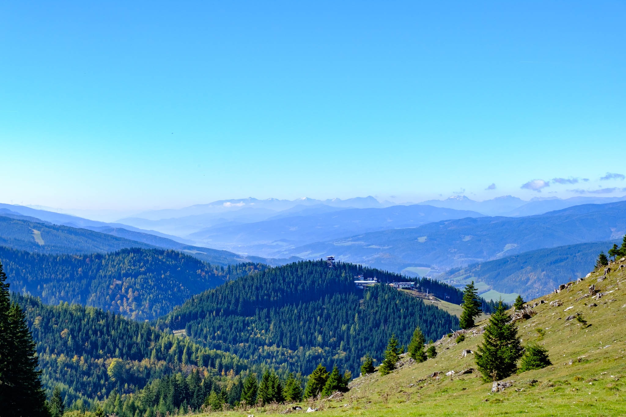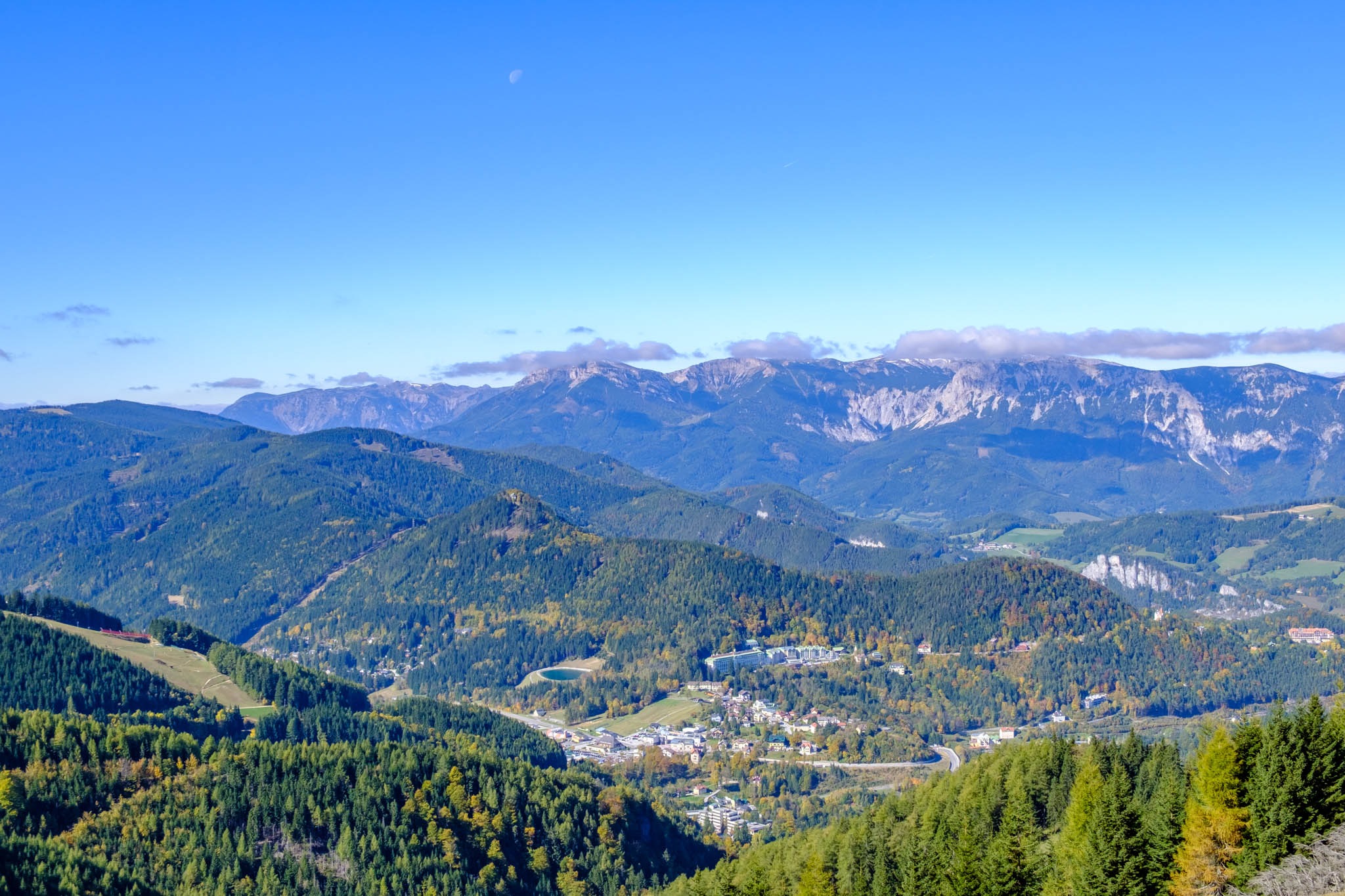 Rendkívül jól látszik a távolban a Hochschwab és az Eisenerz-Alpen is