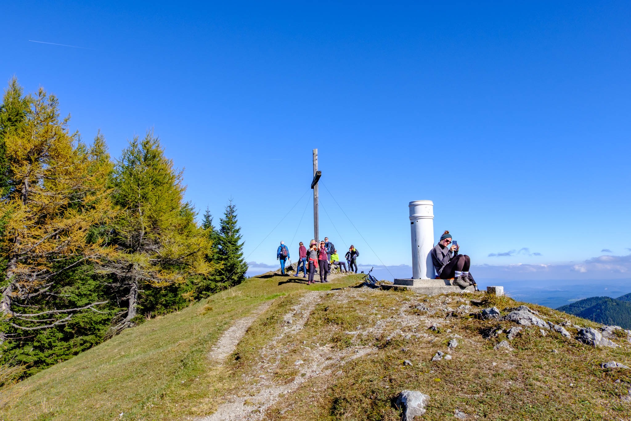 Kisebb tumultus az Erzkogelen. Mindenki élvezi a remek kilátást