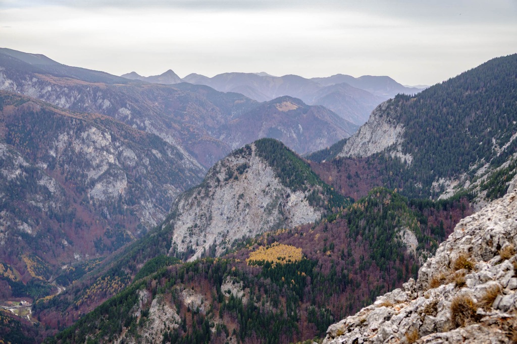 A mai napon a ködpaplan 200-tól egészen 1000/1100 méterig borítja be a Duna-mentét és az alsóbb régiókat. Kissé magasabbra kell orientálódnunk Cirmivel, ha nem akarunk a csontig hatoló, kellemetlenül permetező ködtengerben caplatni. Így jön a képbe a Krummbachstein, ami szinte biztos, hogy kilóg majd a ködből. A választás annál is inkább motiváló, mert a Knofeleben vendégház még november 23.-ig nyitva tart. Na, ez döfi! Sajnos a ködtenger felett sincs ma már ragyogó napsütés. Tulajdonképpen semmilyen sincs. Mindezek ellenére csendes az időnk, egy közelgő front csúsztatja be a napot leárnyékoló fátyolfelhőit az égre.