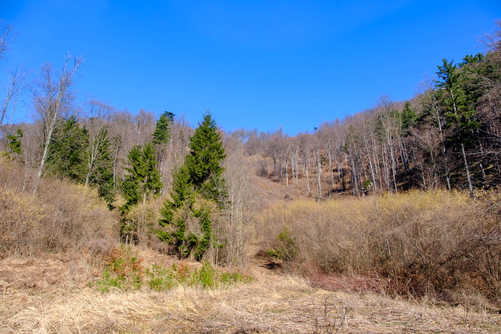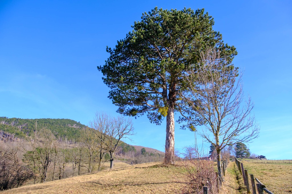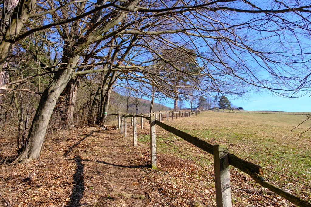 Utoljára szinte pontosan egy évvel ezelőtt, így február vége felé tettem tiszteletem a Hochecken (1037m), akkor a legrövidebb úton, a Krenn-Wegen, Furth an der Tristing községből. Ma egy hosszabb variáns mentén a Mödlinger-Rundwanderwegen szeretném elérni a csúcson található Meyringer-kilátót. Tavaly inkább nem másztam fel a toronyba, mert olyan heves szelek citeráztak, hogy örültem mihamarabb alászállni. Ma, feltehetőleg, ilyesmiről szó nem lesz. Egy gyengéd, csendes napos időt sikerül elcsípnem. Az acélkék égről mosolygó napocska melegét érezve csak balga ember nem derül jókedvre.