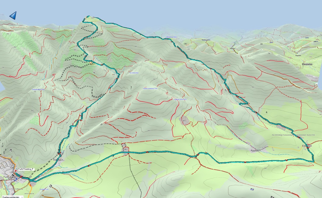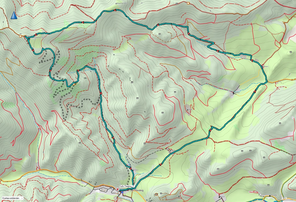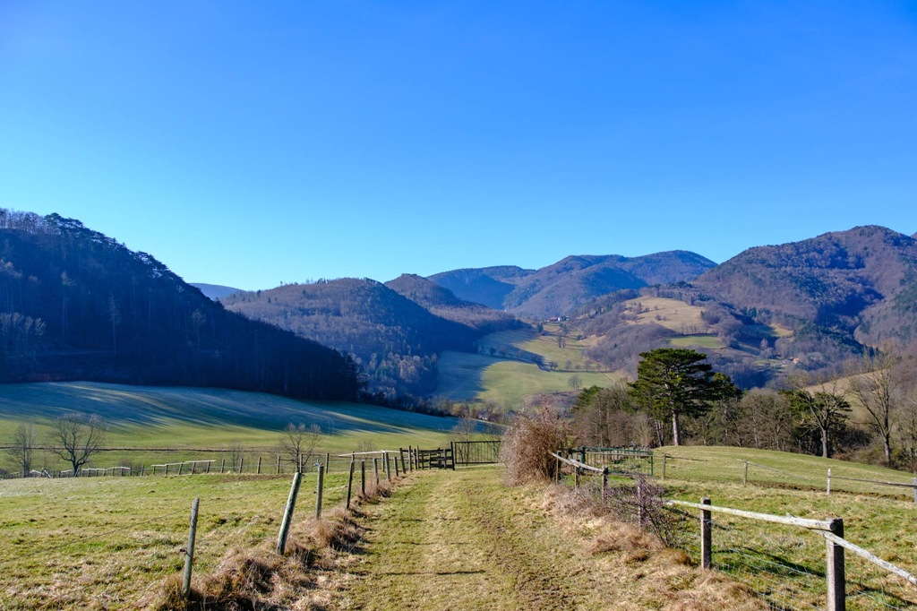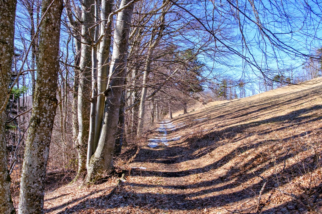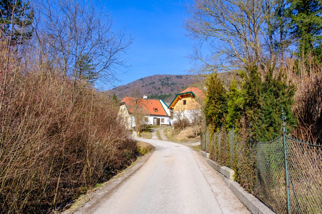 A torony után keresek magamnak egy napos uzsonnázó helyet, ahol átadhatom magam a „hamuban sült pogácsáim” és egyéb elektrolit/frissítő elfogyasztása élvezetének. Kifejezetten nem sietek. Süssön csak rám a nap. Annyi sok szürke téli hétköznap után ez most balzsam a testnek, léleknek. Akarva-akaratlanul, de mégiscsak muszáj alászállnom. A múltkori alkalommal megismert Krenn-Wegen araszolgatok vissza Furthba.