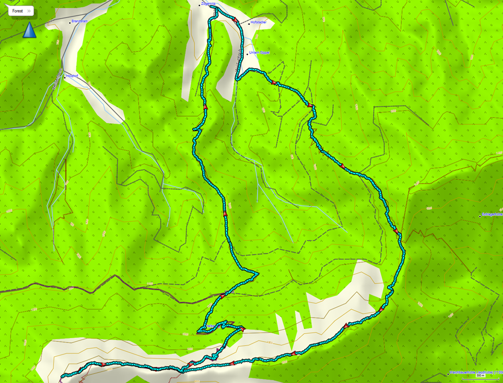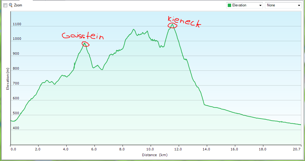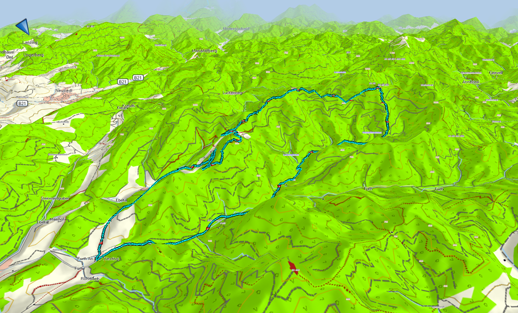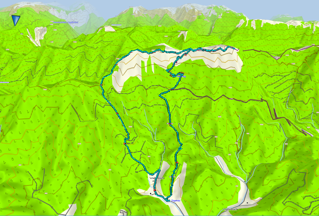 A táv (Gemeindealm, Bärenloch, Kaiserschild, Bärenloch, Gemeindalm) cirka 12 km, 1200m szintemelkedés, bruttó 7:00 óra. Ábra szerinti gpx-nyomvonalam kérésre hozáférhető.