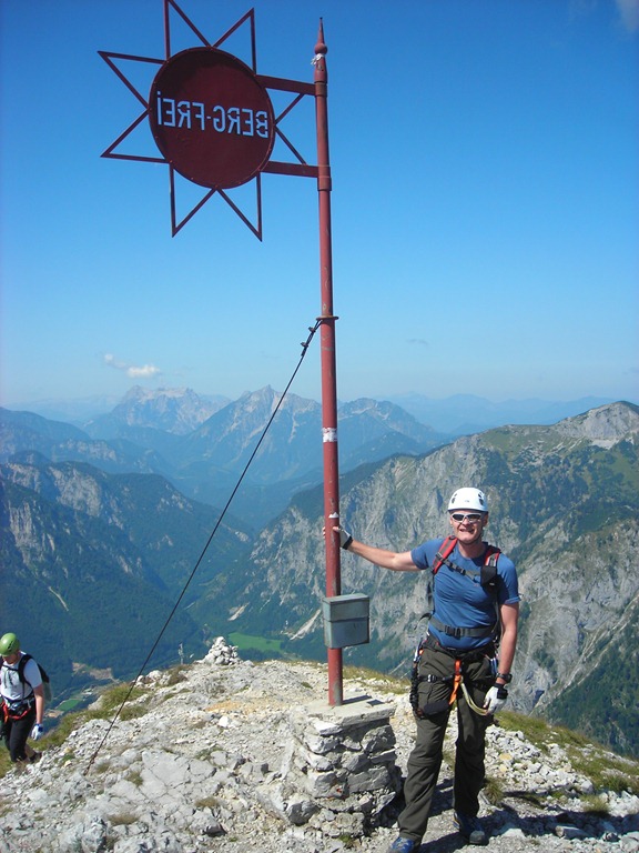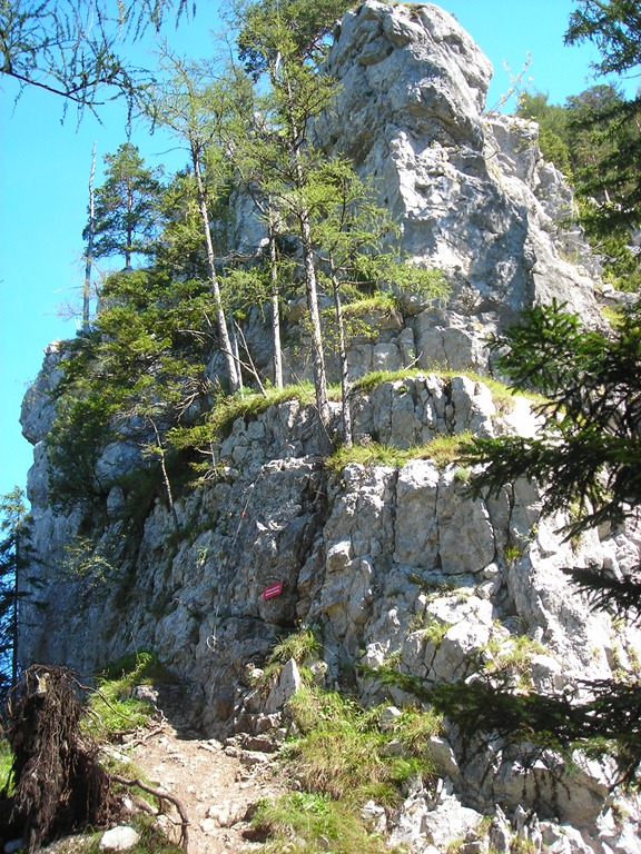Gyermekkoromban azt képzeltem, hogy egy hegy csúcsán még annyicska hely sincs, ahol egy ember kényelmesen állni tudna. Később tapasztalataim helyesbítették a képet, mert a legtöbb hegycsúcson azért mégiscsak rengeteg hely van, lásd például a Klosterwappen, Zwölferhorn, Hochkar, Hochlantsch, Jakobskogel, meg a többi hasonló. A tegnapi kiruccanásom a Grete Klinger Steigen viszont korai elképzeléseimet idézte, mert bizony a hegygerincen vezető ösvény helyenként inkább egy kés élén történő egyensúlyozással felérő mutatvány közelében járt. Mit nekem Hans von Haidsteig és Eisenrz szellős kulisszái, ahol legalább egy köldökzsinórral mindvégig össze vagy kötve a biztonságot jelentő drótkötéllel, nem úgy, mint a Grete Klingeren. Itt helyenként megszűnik az önbiztosítás lehetősége és az ösvény szélessége a két oldalon tátongó szakadék között csak centiméterekben adható meg.