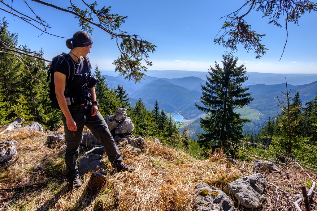 Jómagam tehát bíbelődhetek a hágóvasak levételével és elcsomagolásával. Az Alsó Fadensteig következik (fenti képek), mely valahányszor páratlan panorámával hálálja az idáig elhullajtott verejtéket. A napos, már-már száraz szakaszokat azonban hamarosan újra árnyékos rész, a kulcspontot jelentő Felső Fadensteig követi. Itt természetesen valamennyien hágóvasra váltunk, mert olyan nincs, hogy itt télen ne legyen jégvilág.