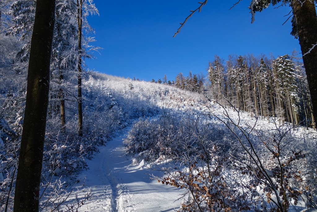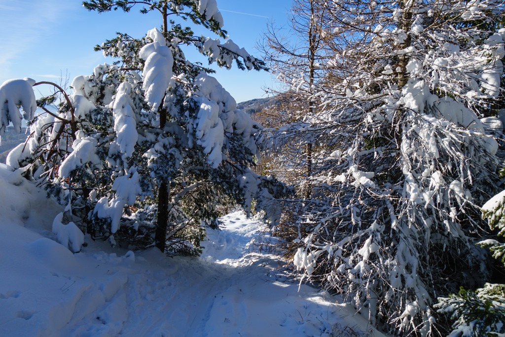 A Fölzsattelben tévesen azt hiszem, vége a meredek ereszkedések sorozatának. Pedig a tény, hogy még mindig 1624 méteres szinten vagyok, óvatosságra int. Indulok tehát az előzőkéhez képest immár szerény lejtőkön a Fölzalm felé. A Fölzalmot téli álomba szenderülve találom (13:25), de ez nem lep meg, mert tudtam előre.