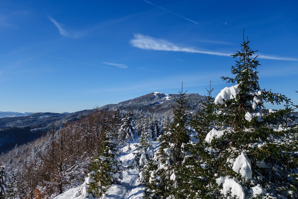 … kilátás “átellenben”, jobbról a Hofertalturm (a torony) és a távolban a Hohe Veitsch