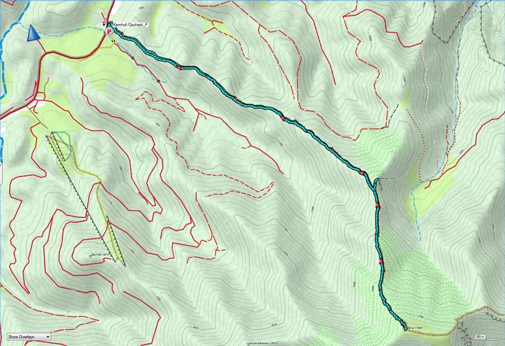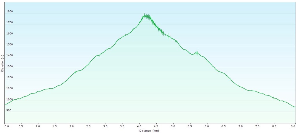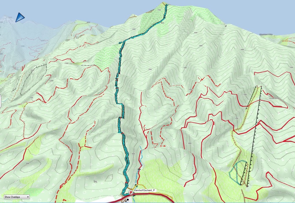 A megtett táv (Fölzklamm, Hans Leitner Alpinsteig, Bürgeralm, Höchstein, Zlacken, Mitteralmkogel, Plattensteinkuppe, Fölzsattel, Fölzalm, Fölzklamm) 18 km, 1400 m szintemelkedés bruttó 7:06 óra alatt (nettó 6:00 óra)