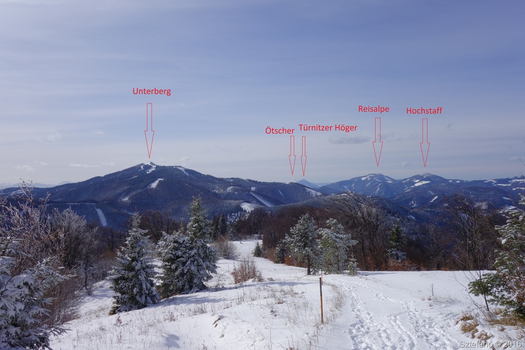 Útközben meg-megállítjuk a velünk szemben érkező vándorokat és érdeklődünk. Az első, akibe belebotlunk még csak nem is hallott a Hoher Hengstről, a második, egy ugyancsak nyáriasan öltözött öregúr, tud ugyan az út létezéséről de mint mondja, jól el van dugva „valahol a Köglerhaus” mögött. Hát, ezzel sem vagyunk kisegítve.