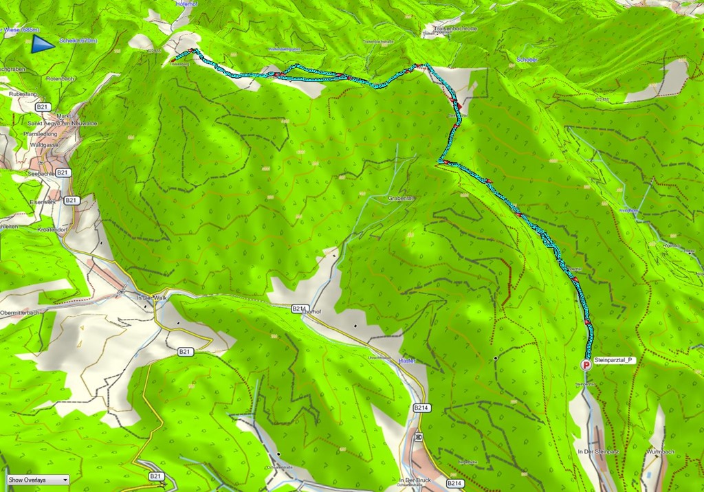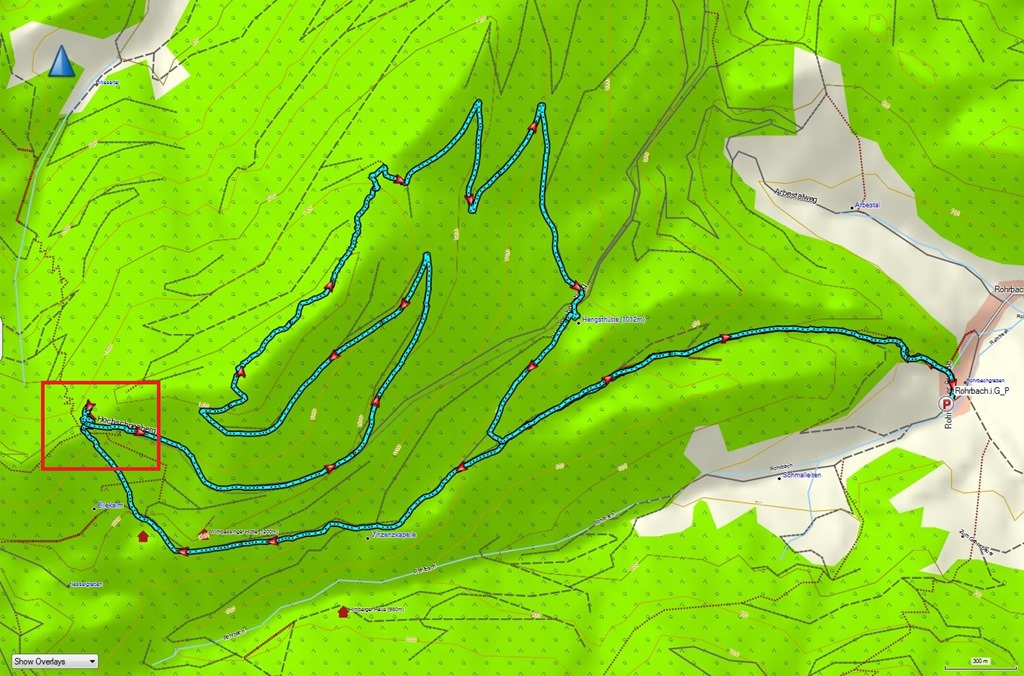 Nehéz olyan beszámolót találni, mely pontos adatokkal szolgál az Adolf Kögler-Haus tövéből a Hoher Hengstre induló feljutásról. Ezekből úgy tűnik, mintha a világ legtermészetesebb dolga lenne, hogy ha valaki idáig elérkezik, akkor azonnal megleli az ösvényt és már neki is durálhatja magát a kaptatónak. Hát sajnos, erről szó sincs. Mi nem találjuk meg a feljutás eminneni módját, így a (rezerva) B variáns mentén, egy erdészeti úton elérjük el kiszemelt célunkat.