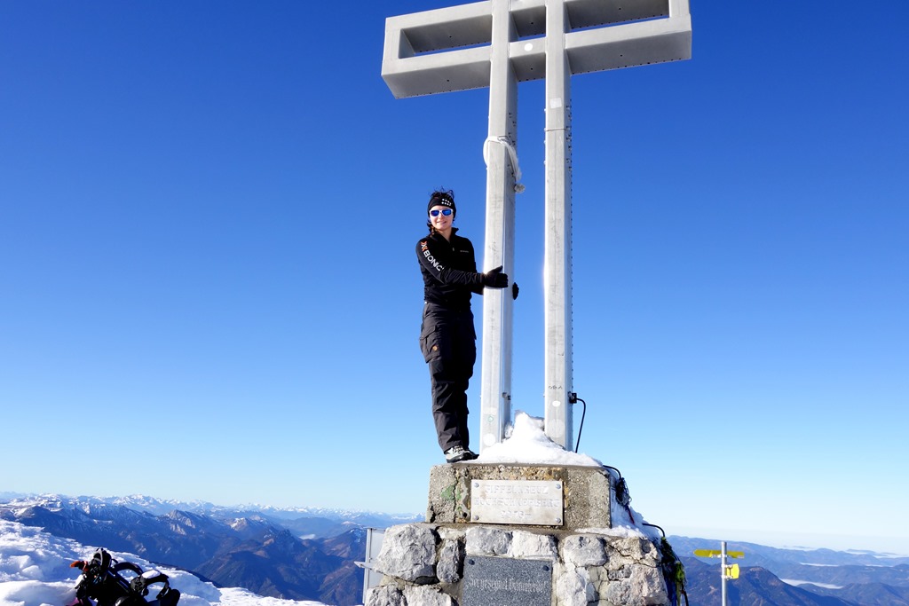 Vasárnap a völgyben ismét köd van menün, a hegyekben viszont ragyogó napsütés. Ráadásul ezúttal még a szél is csak mérsékelt marad a nap folyamán. Igazság szerint a viszonyok alkalmasak egy nagy és megerőltető túrára. Egy darabig gondolkodom a Hochschwabon, mely most remek jégkulisszával szolgálhat, de nincs partnerem, és az utolsó két kiruccanásunk sem volt éppen laza sétafikának nevezhető.