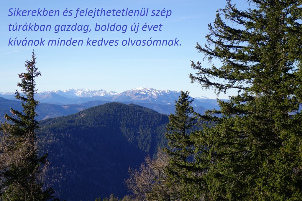 Később folytatom utam, mely természetesen érinti a Kampalpe hivatalosan kijelölt legmagasabb pontját is, mégpedig egy csúf, cirka 1m magas betonoszlop formájában. Innen viszont a túloldal hegyeit, a Raxot és a Schneberget, valamint a Sonnwendsteint lehet megcsodálni.