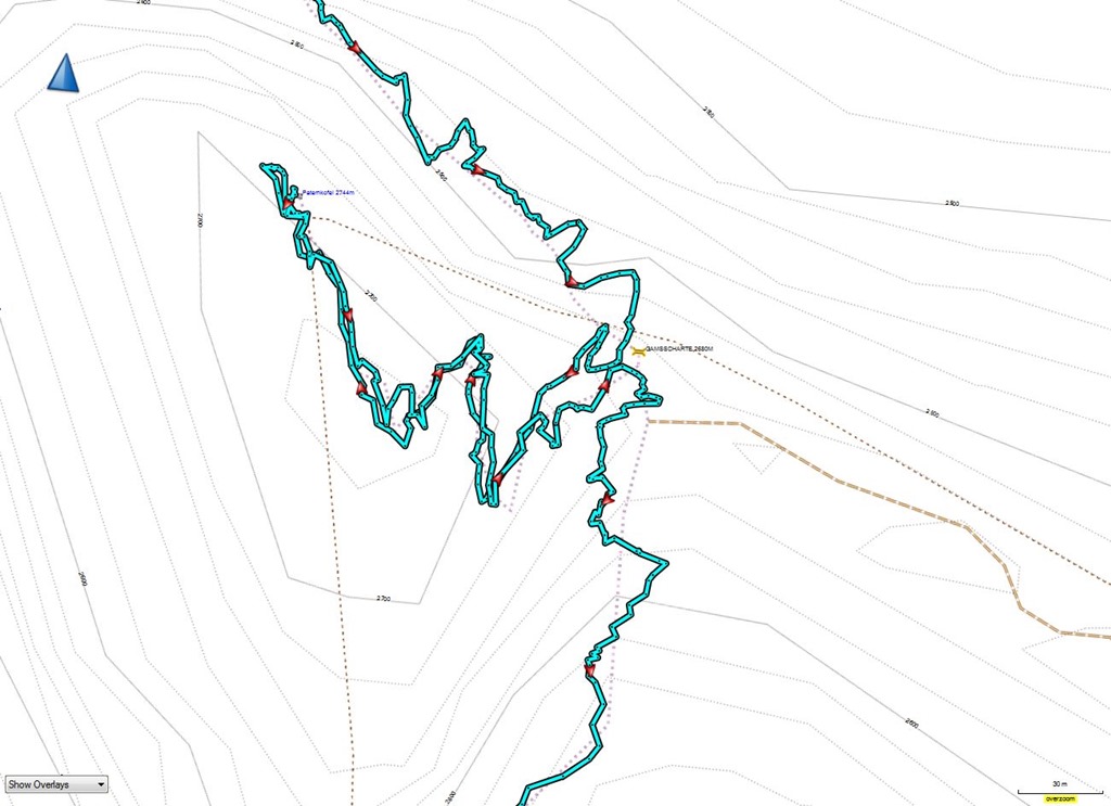 A Gamsscharte és a csúcs környéke (nyomvonal részlet kinagyítva) |