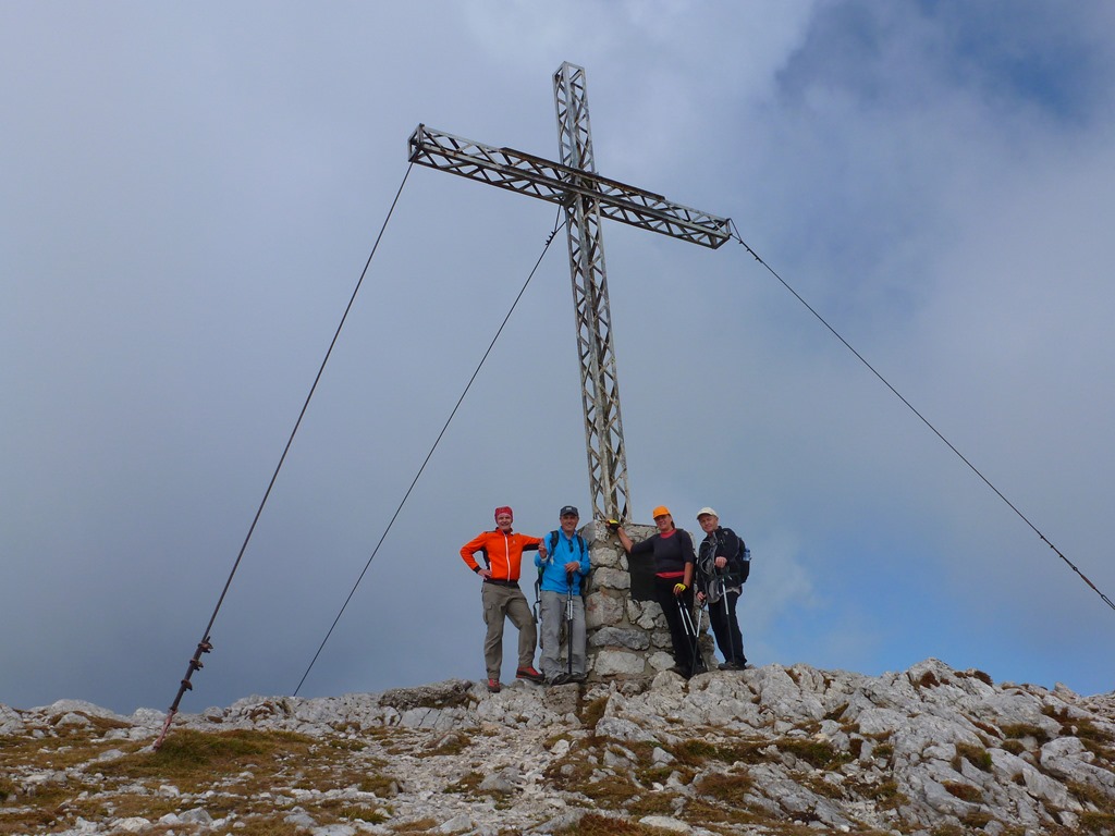 Még jóval a déli harangszó előtt (11:35) bukkanunk ki a platón. Élénk szél fogad, ami gyors cselekvésre ösztönöz. Rögvest magunkra kapunk valamit. A füves platót keresztezve csatlakozunk a Fadensteigen jobbról érkezők soraihoz. Alig 20 perc elteltével elérjük a Fischerhüttet és azonnal asztalhoz ülhetünk. Félóra ebédszünet után még tiszteletünket tesszük a Klosterwappenon, majd lefelé ereszkedve, Cirmi unszolására még útba ejtjük a Waxriegelt is.