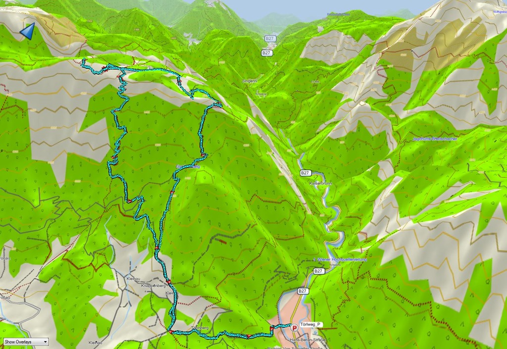 Úgy tervezzük, Baumgartner állomást elérve letelepszünk majd pár percre, de ez nem válik be. Az állomást egy 20-25 fős hangoskodó magyar csapat tartja ostromzár alatt (mi a szösz?). Elképzelni sem tudom, honnan hová igyekeznek ilyen számosan, de látszólag nem sietős nekik. Hosszú sor kanyarog az ételt-italt osztó ablak előtt, ami jól hallható nyelvi és kommunikációs nehézségeikben gyökeredzik. Mivel a sor apadni nem nagyon látszik, gyorsan el is állunk eredeti szándékunktól. Van elég innivalónk, akadálytalanul folytathatjuk maradék utunkat Schneebergdörfl felé. Nem sokkal több, mint 8 óra elteltével, 16:10-kor érünk vissza a kiindulópontba.